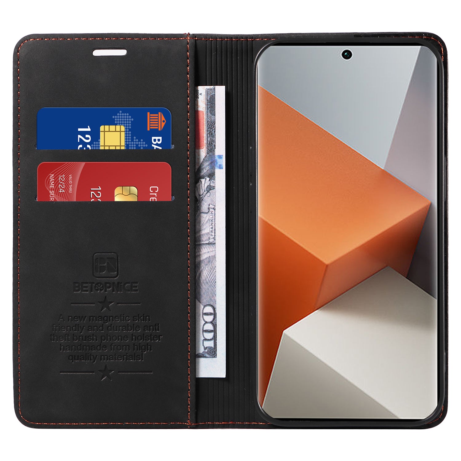 BETOPNICE 003 for Xiaomi Redmi Note 13 Pro+ 5G Wallet Case RFID Blocking Leather Cover - Black