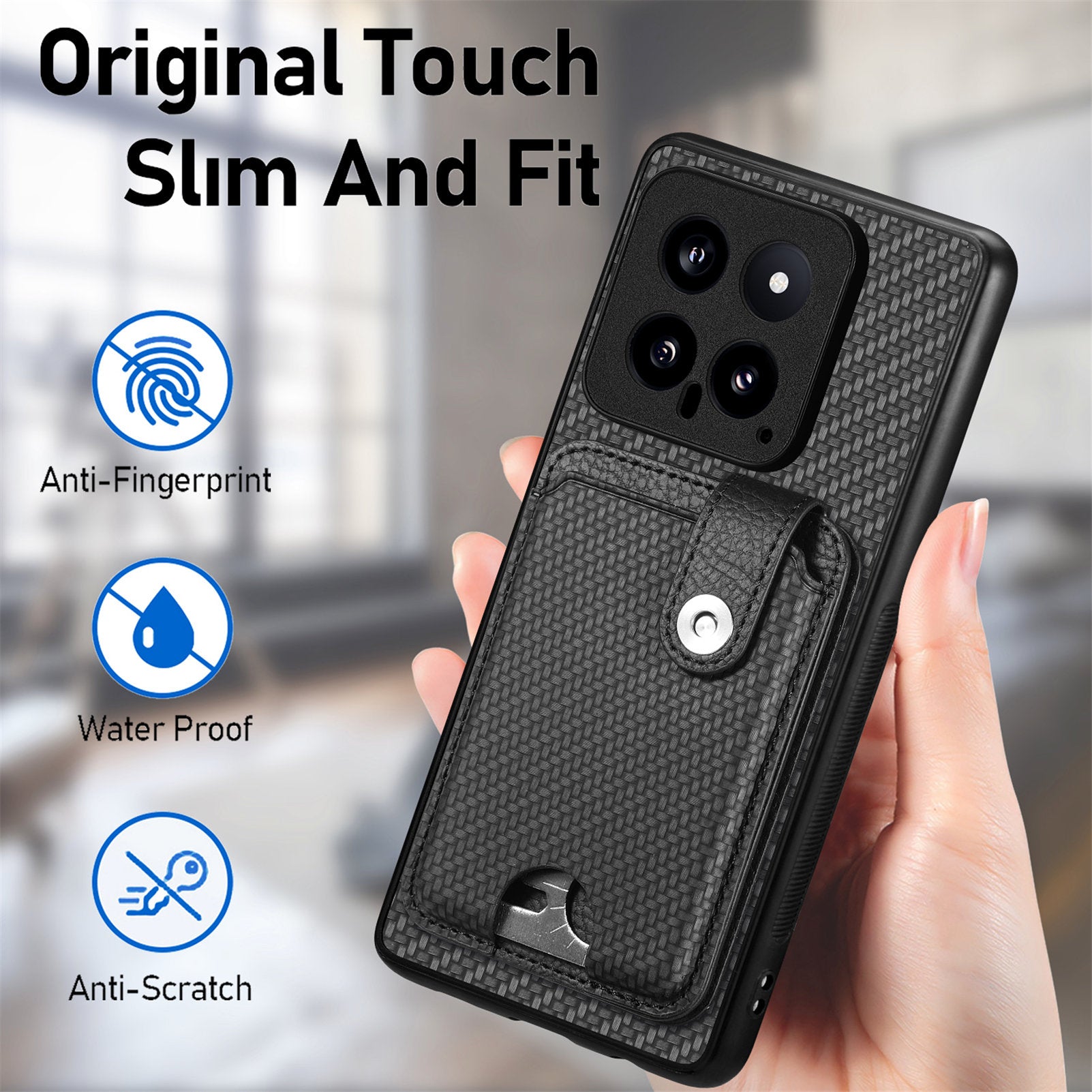 - Constructed with PC+TPU material covered with carbon fiber PU leather