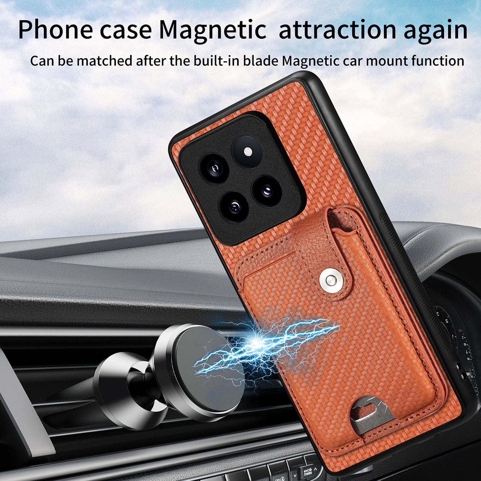 C1-06 For Xiaomi 14 Pro Case Kickstand Card Holder Phone Back Cover with Card Knife Tool - Brown