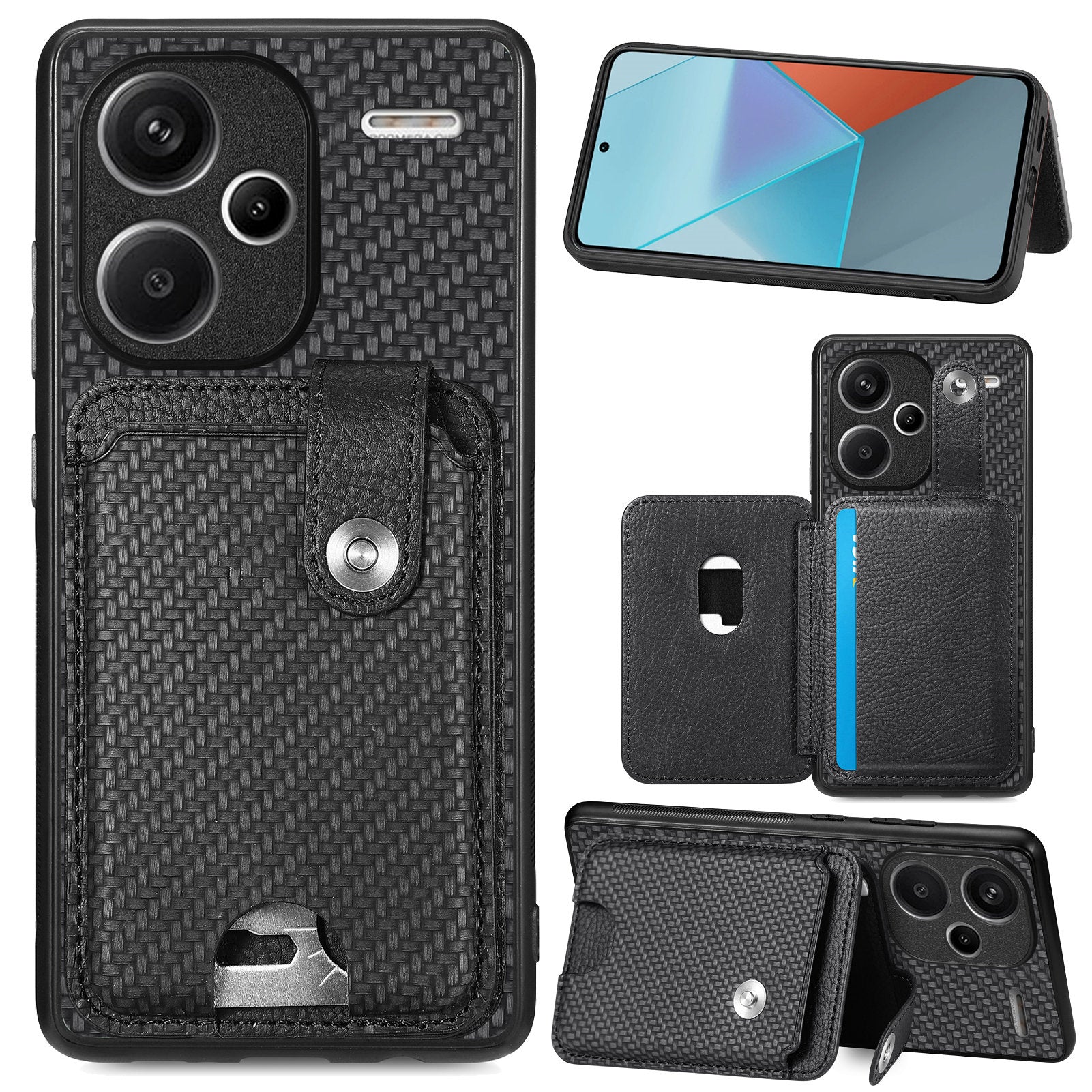 C1-06 For Xiaomi Redmi Note 13 Pro+ 5G Case Carbon Fiber Texture Phone Back Cover with Card Knife Tool - Black