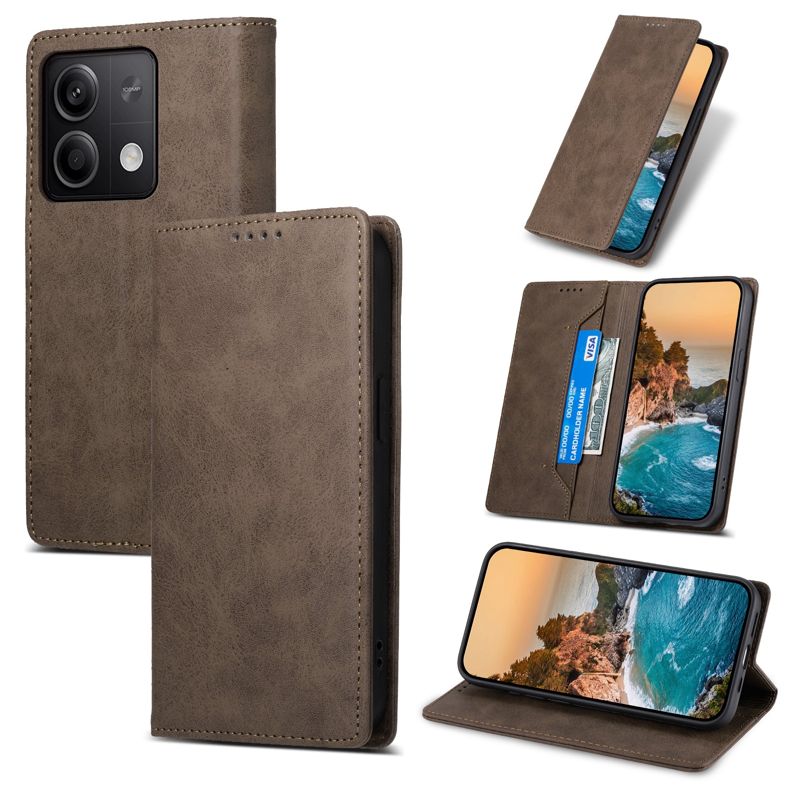 DF-05 For Xiaomi Redmi Note 13 5G / Note 13 5G (China) Case Wallet Phone Cover Magnetic Closing - Brown