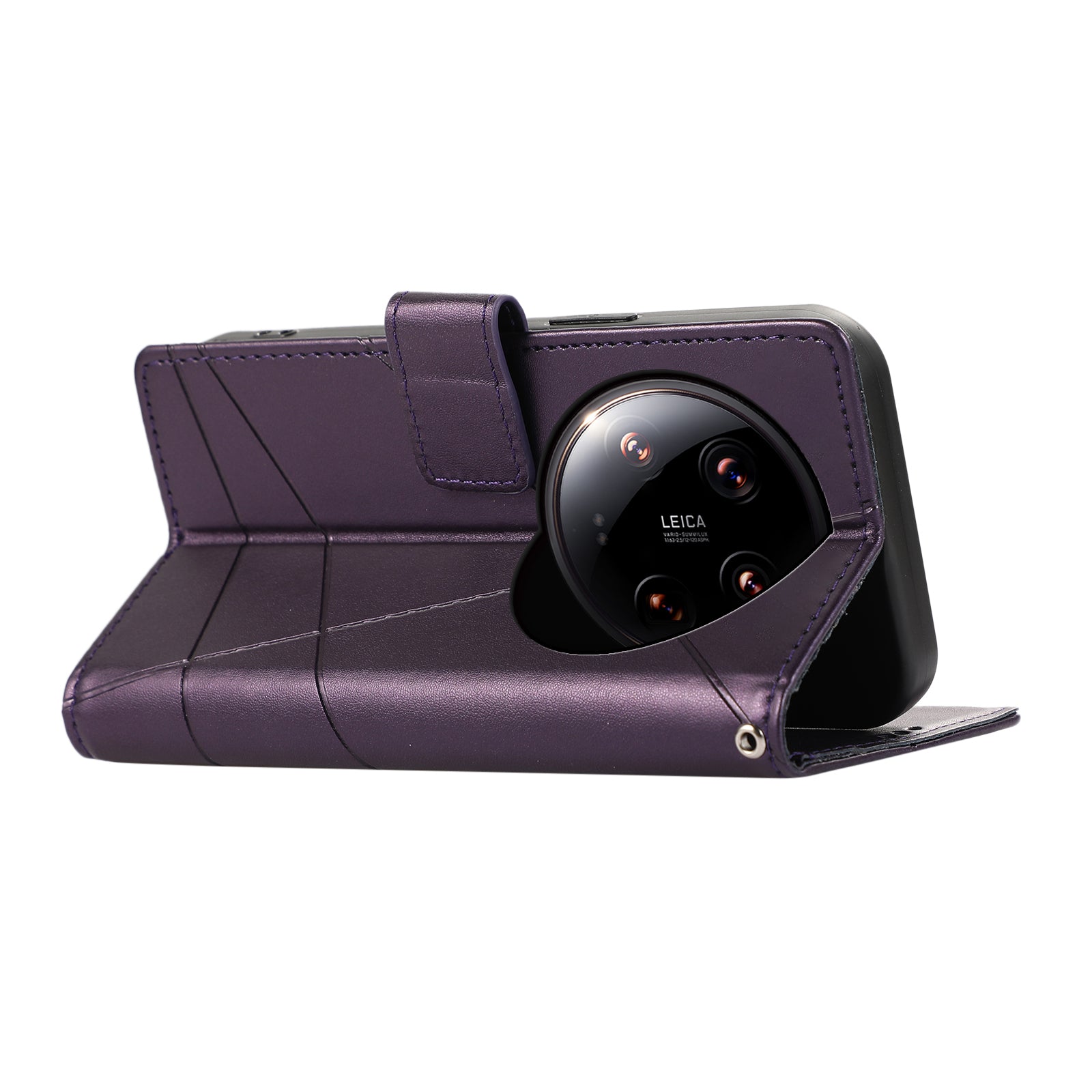 DF-06 For Xiaomi 14 Ultra Case Line Imprinted Leather Phone Cases Wholesale - Purple