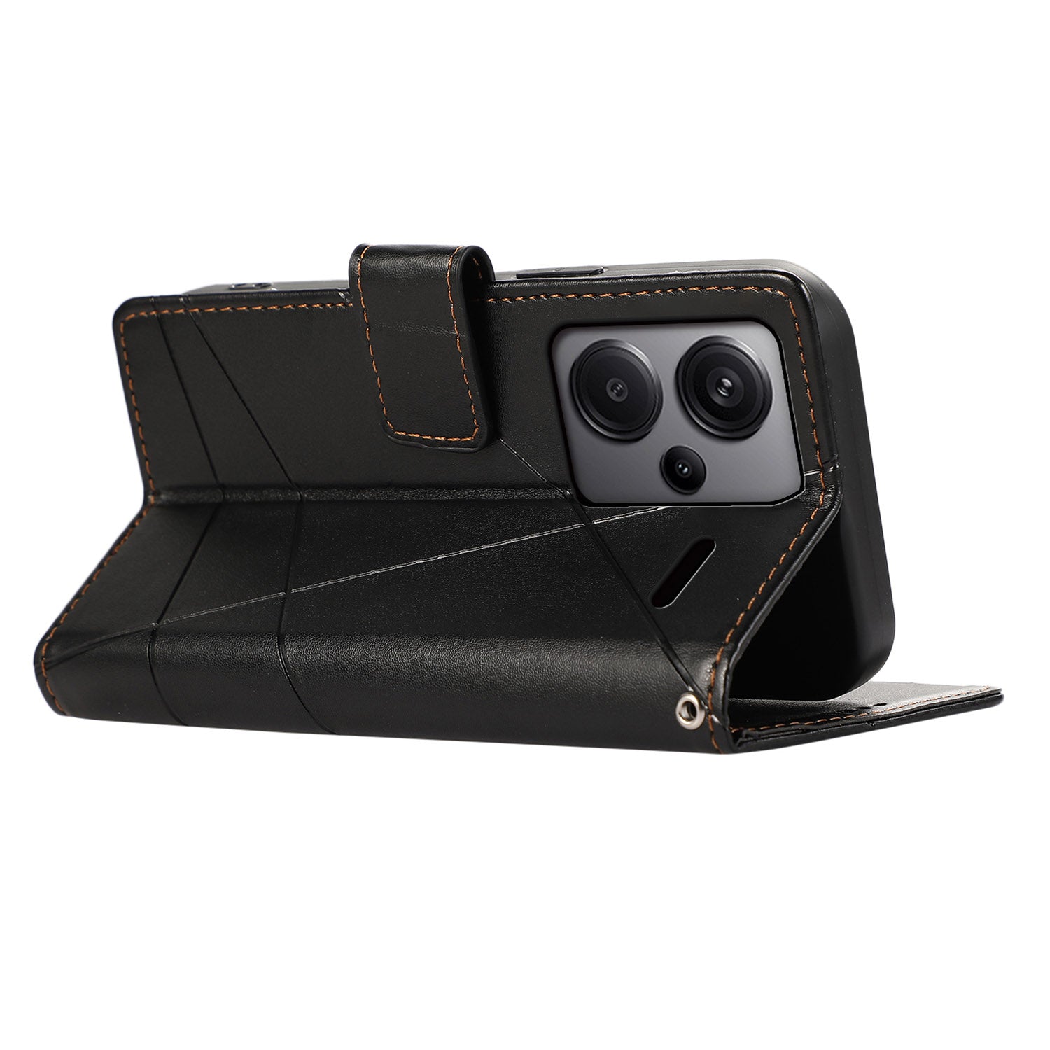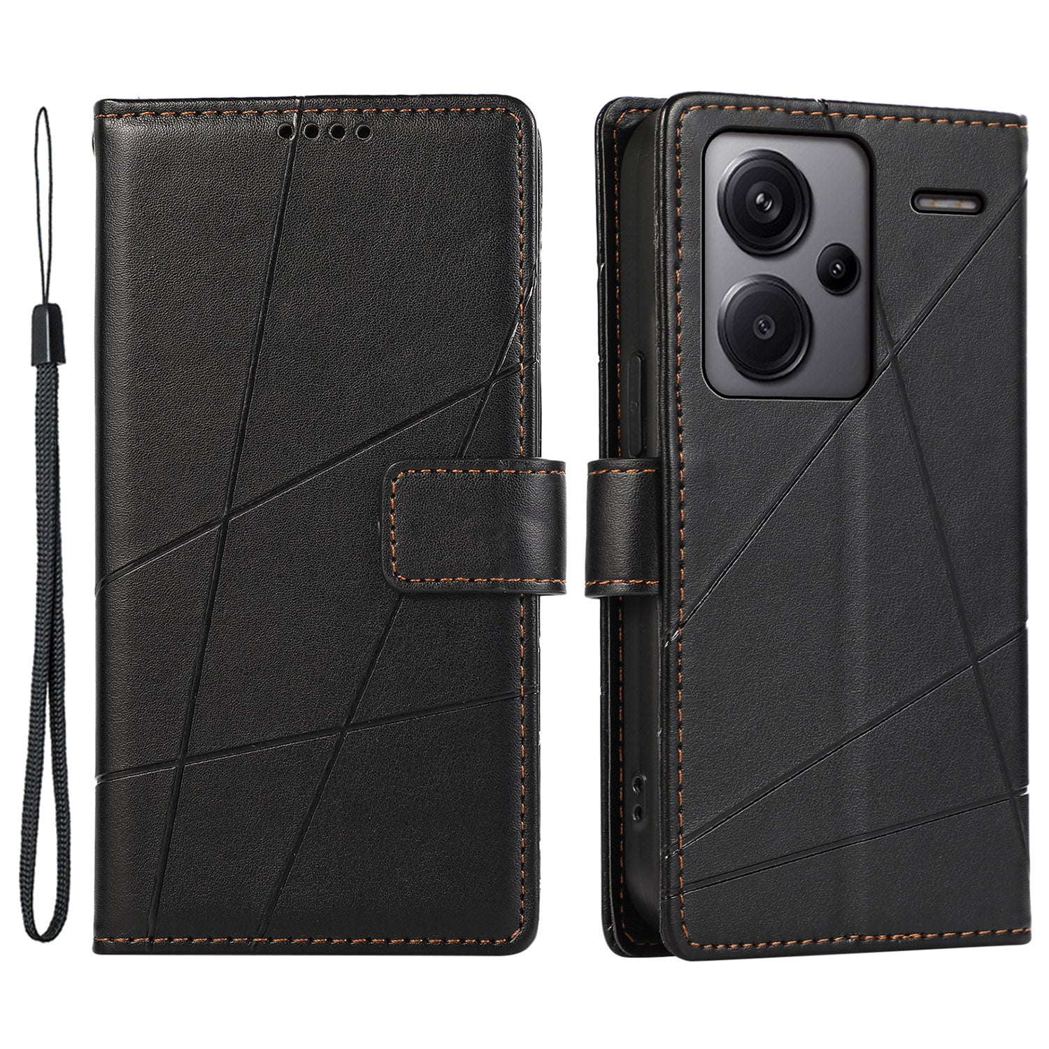 DF-06 For Xiaomi Redmi Note 13 Pro+ 5G Case Leather Cover Line Imprinted with Wallet - Black