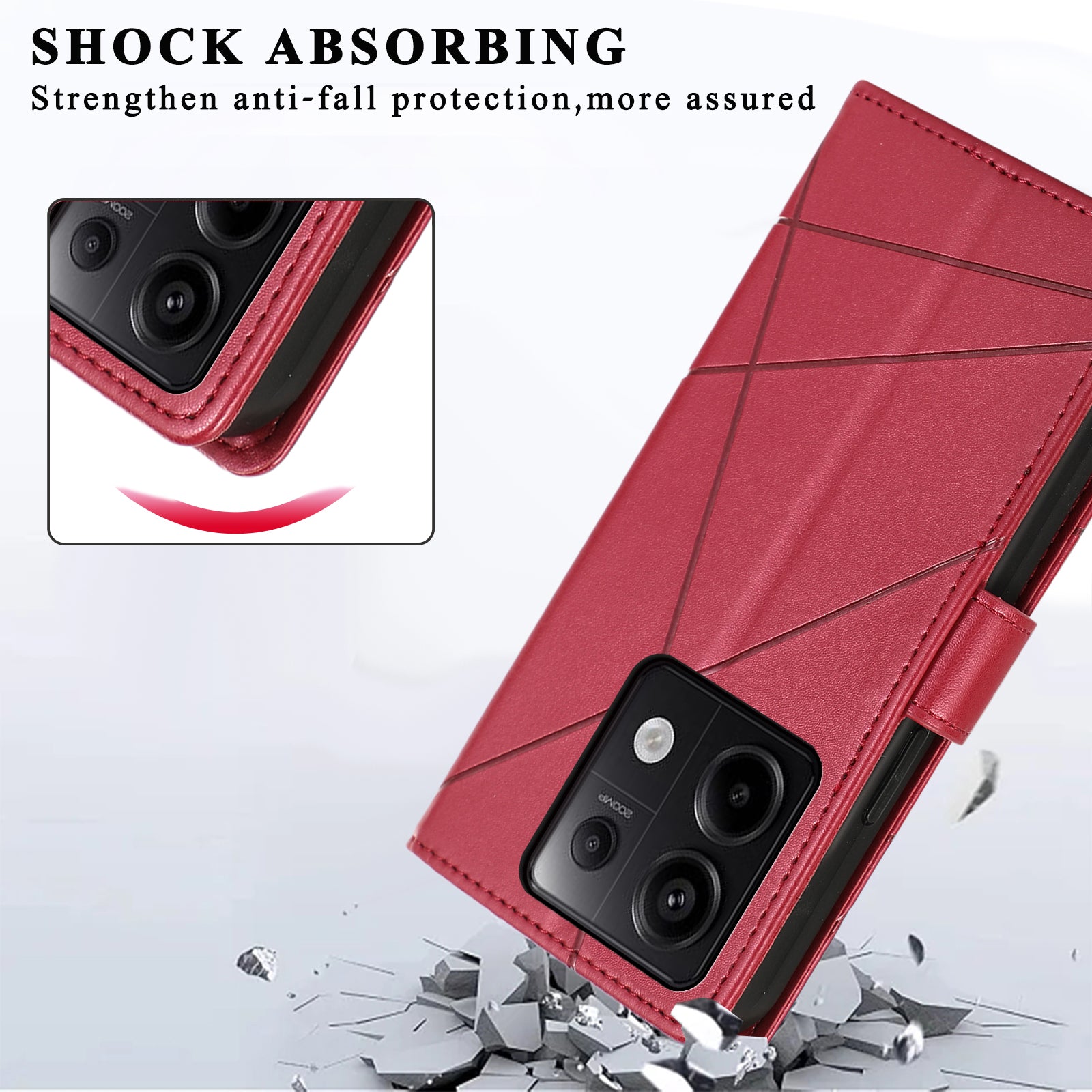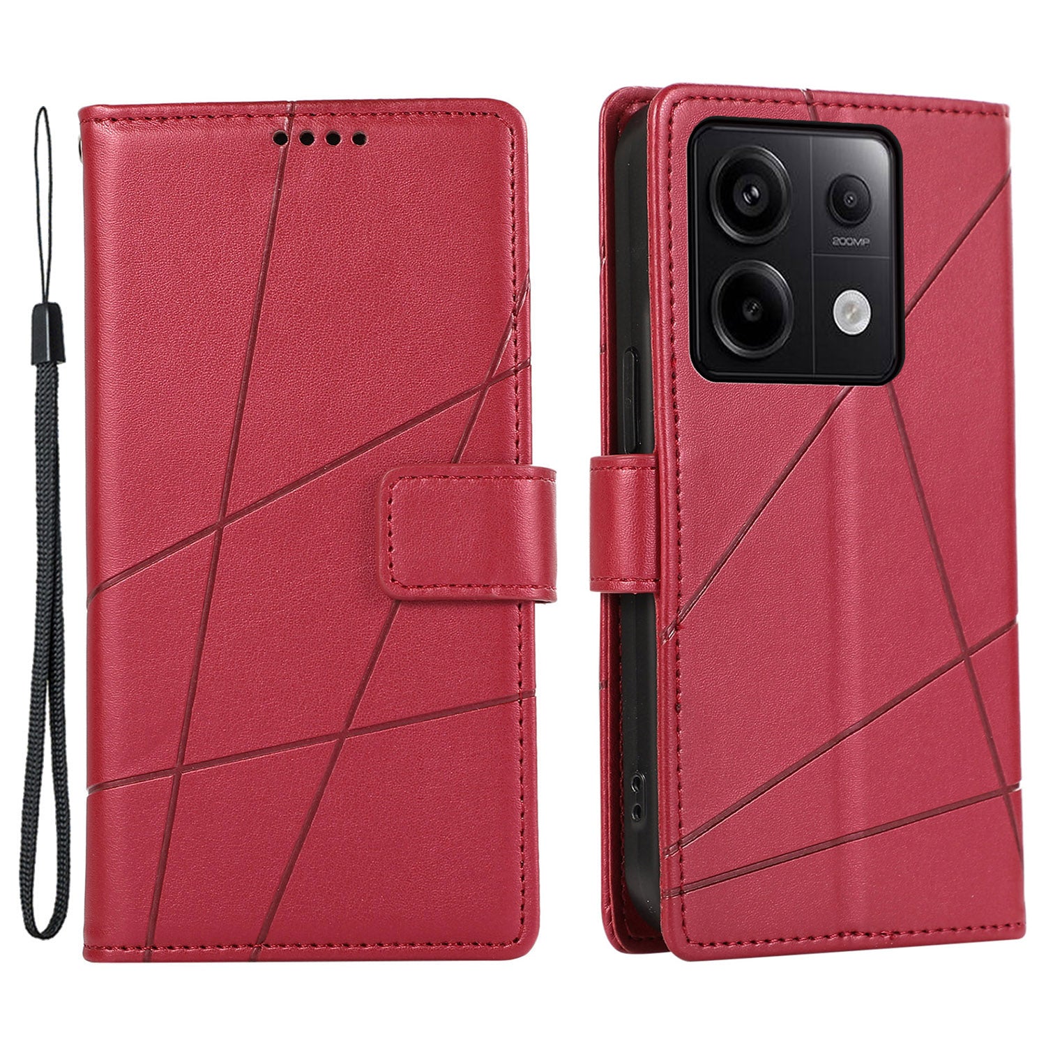 DF-06 For Xiaomi Redmi Note 13 Pro 5G / Poco X6 5G Leather Case Line Imprinted Wallet Cover - Red