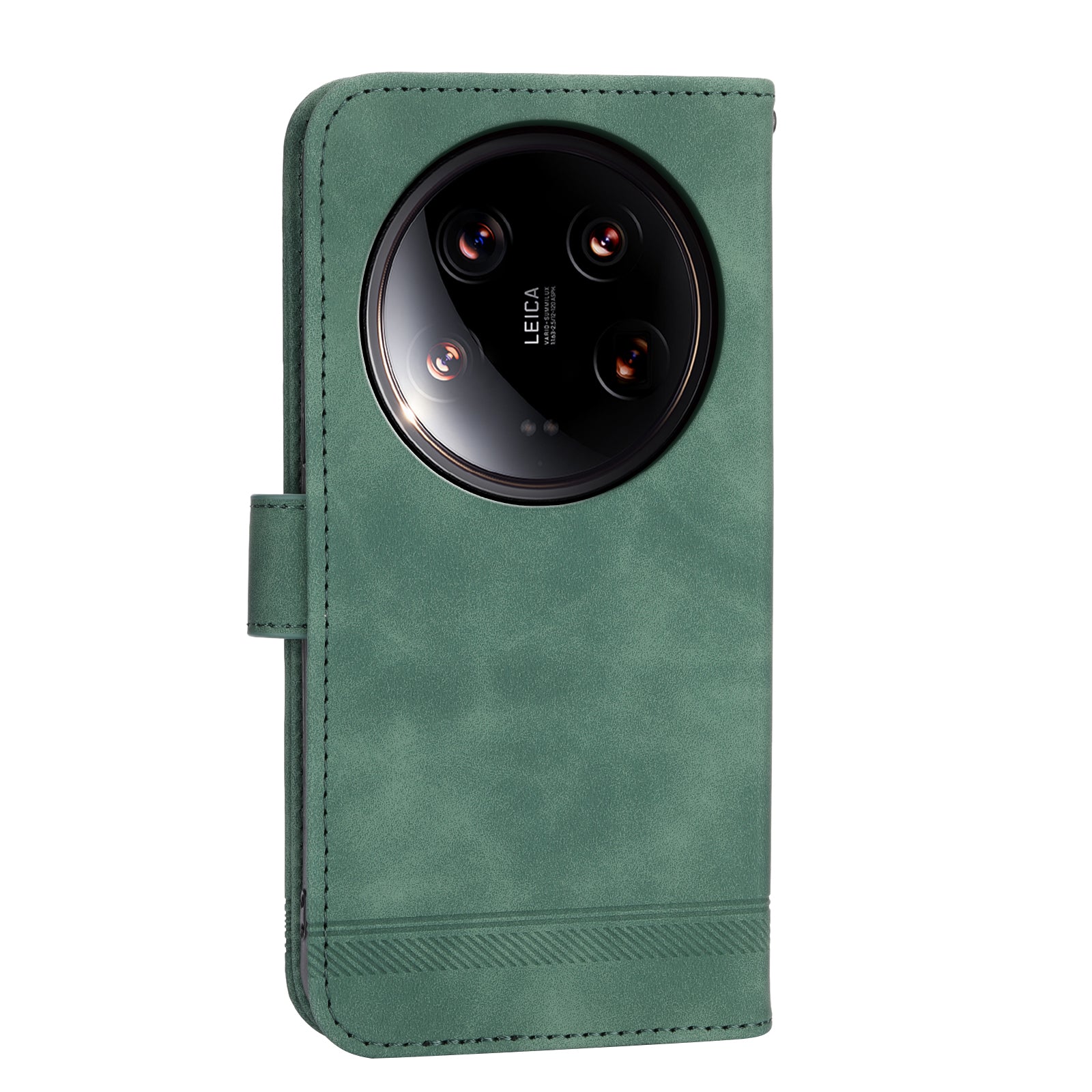 DIERFENG DF-03 Wallet Case for Xiaomi 14 Ultra Phone Shell Lines Imprinted Flip Stand Cover - Green