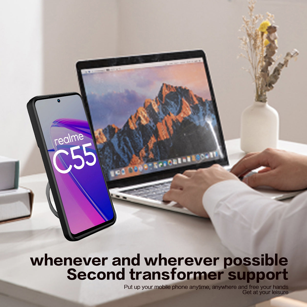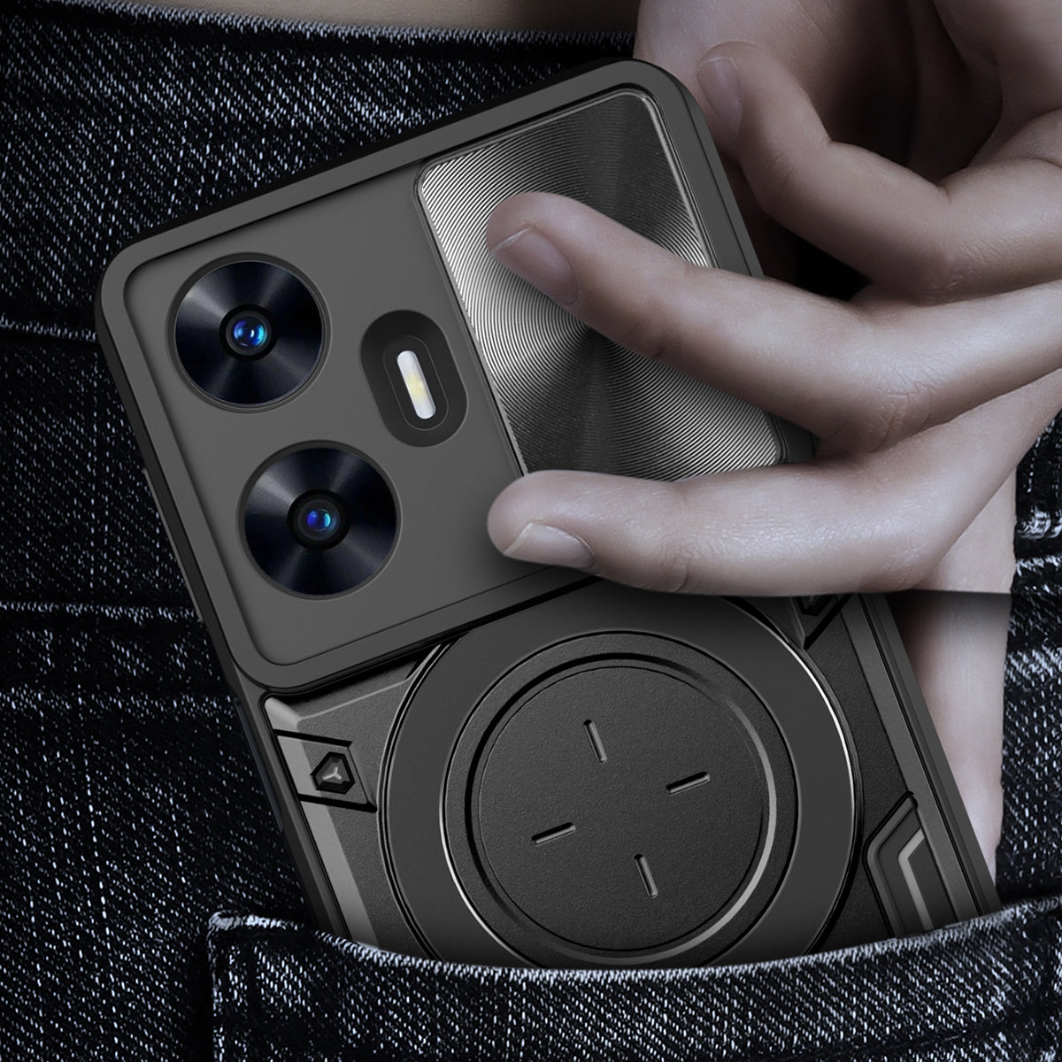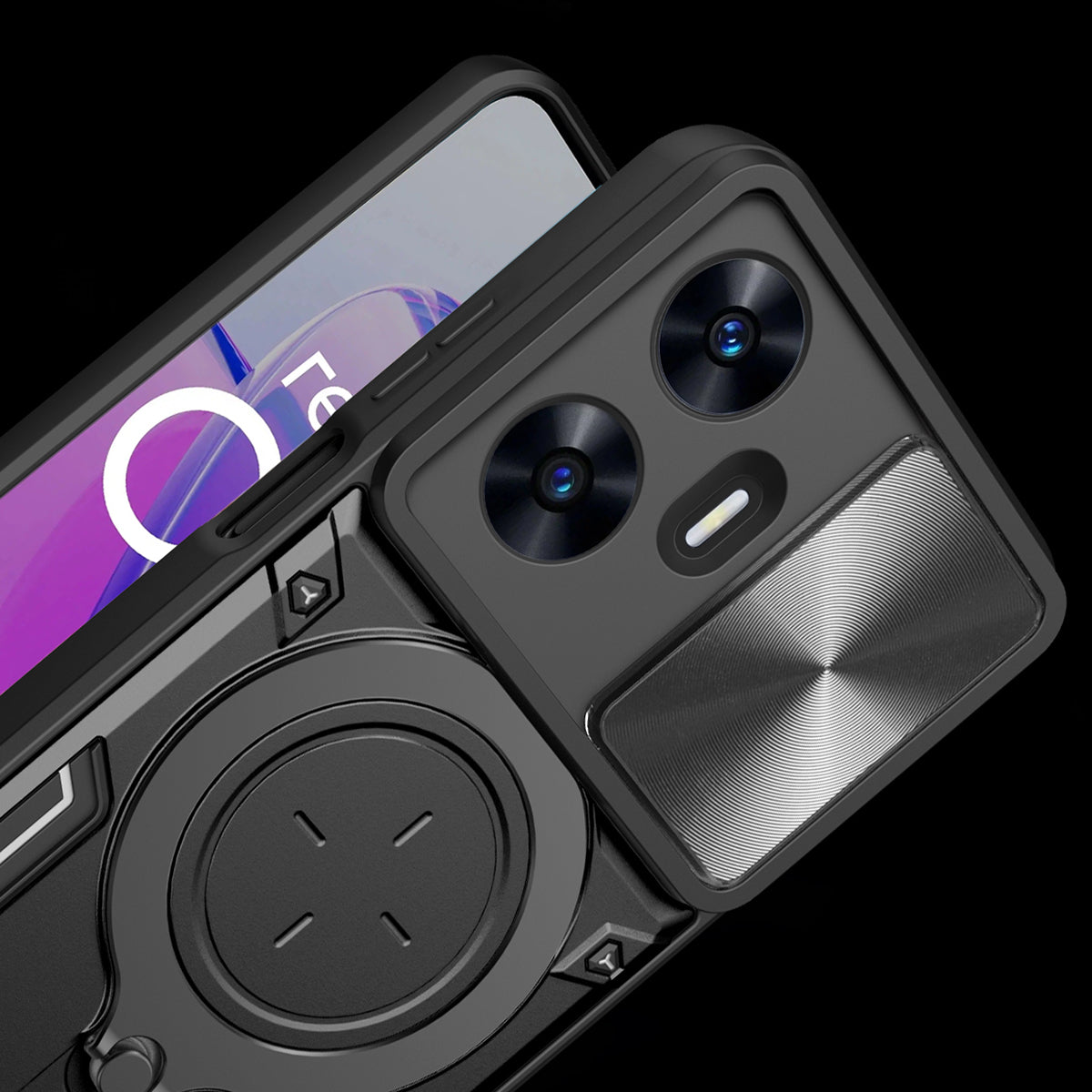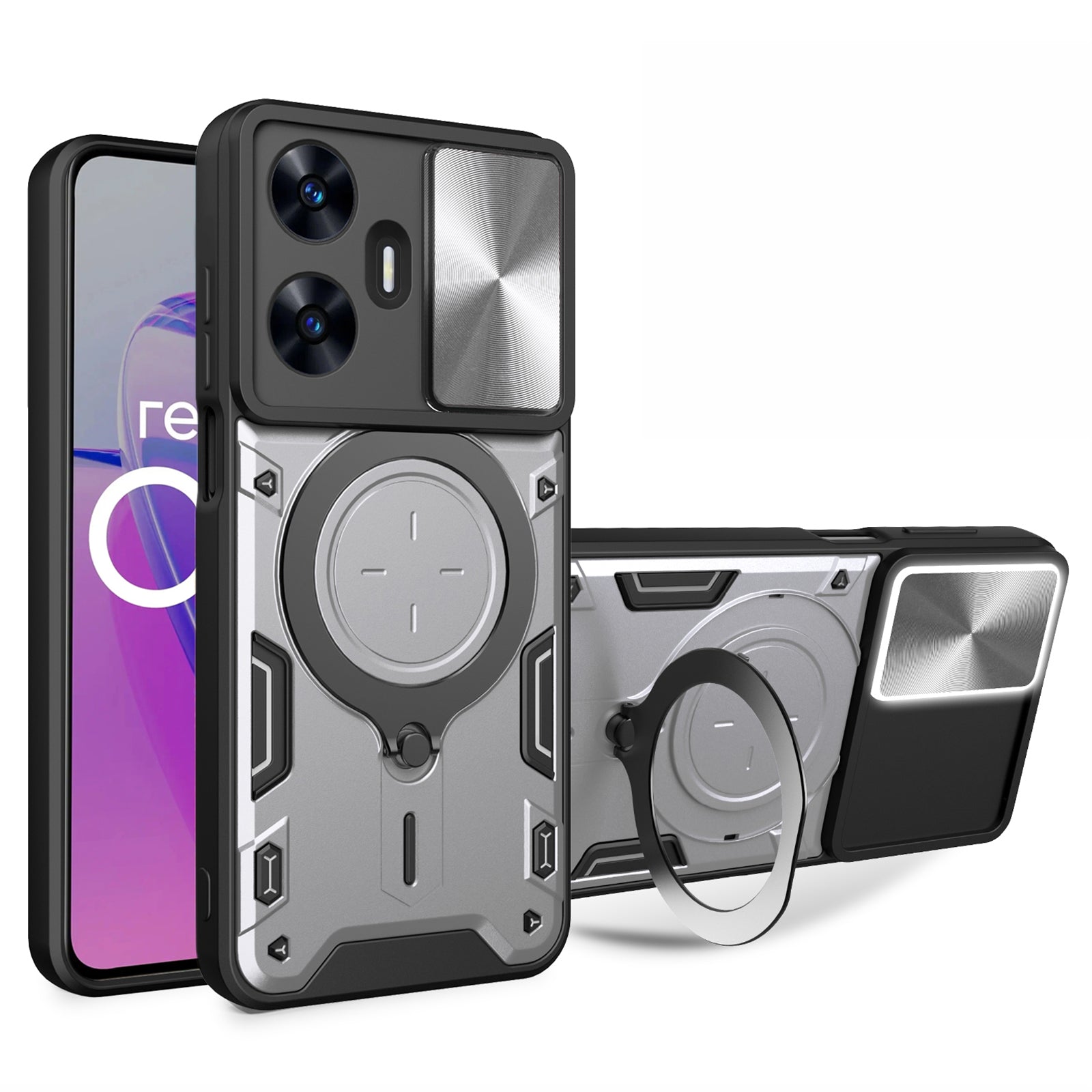 Uniqkart for Realme C55 PC+TPU Kickstand Cover Slide Camera Window Protection Phone Case - Silver