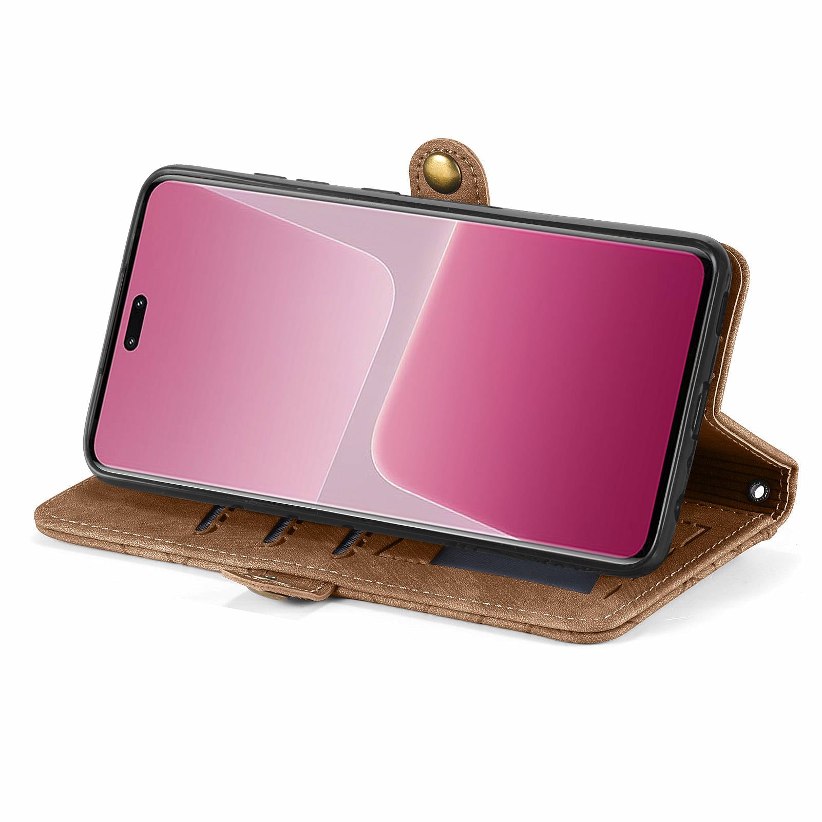 For Xiaomi 13 Lite / Civi 2 5G Case Zipper Wallet Leather Geometry Phone Cover - Brown