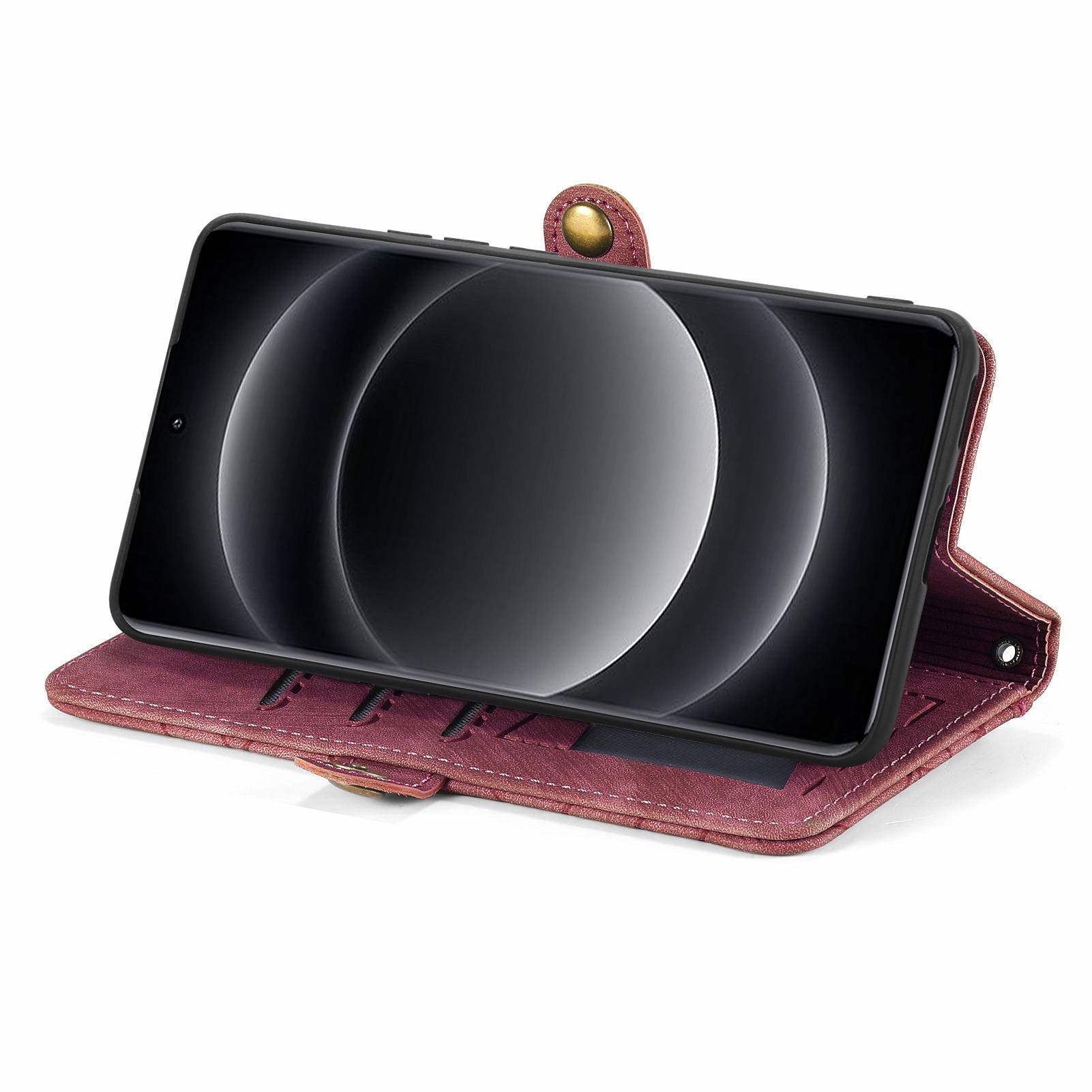 For Xiaomi 14 Ultra Leather Case Zipper Pocket Wallet Geometry Phone Cover with Strap - Red