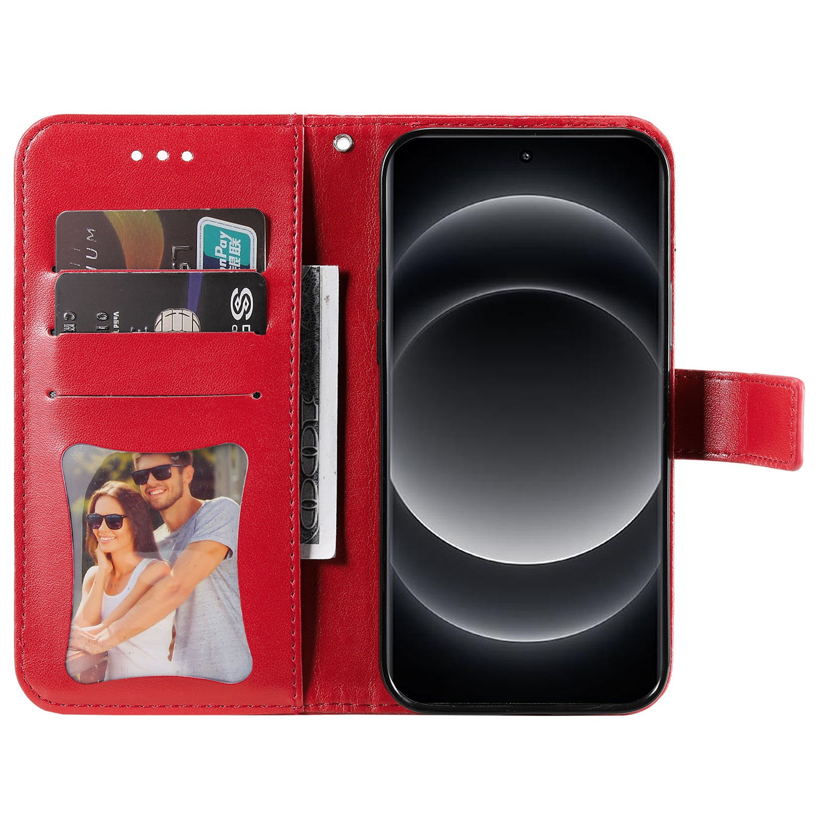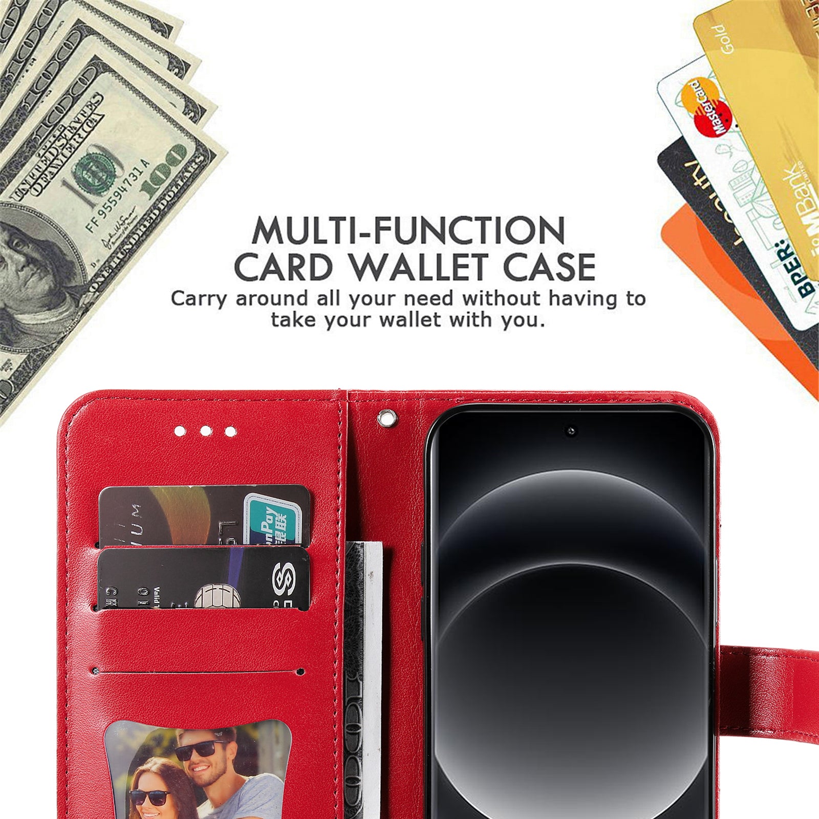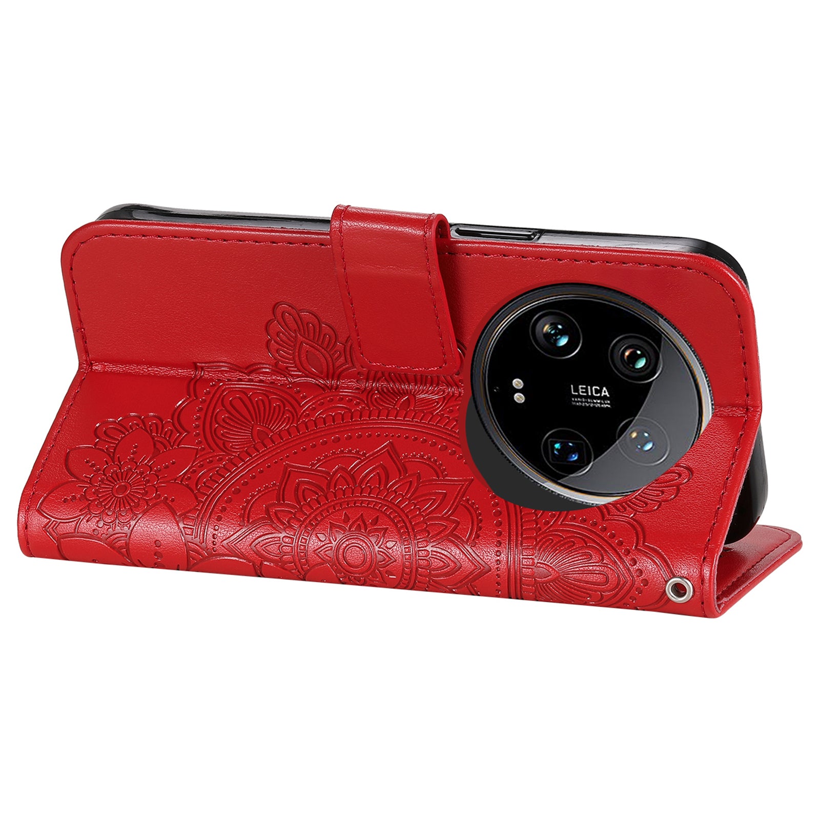 For Xiaomi 14 Ultra Wallet Case Flower Imprinted Leather Phone Cover - Red