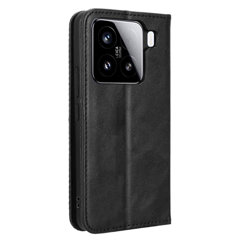 For Xiaomi 15 Leather Case Wallet Stand Retro Texture Phone Cover - Black