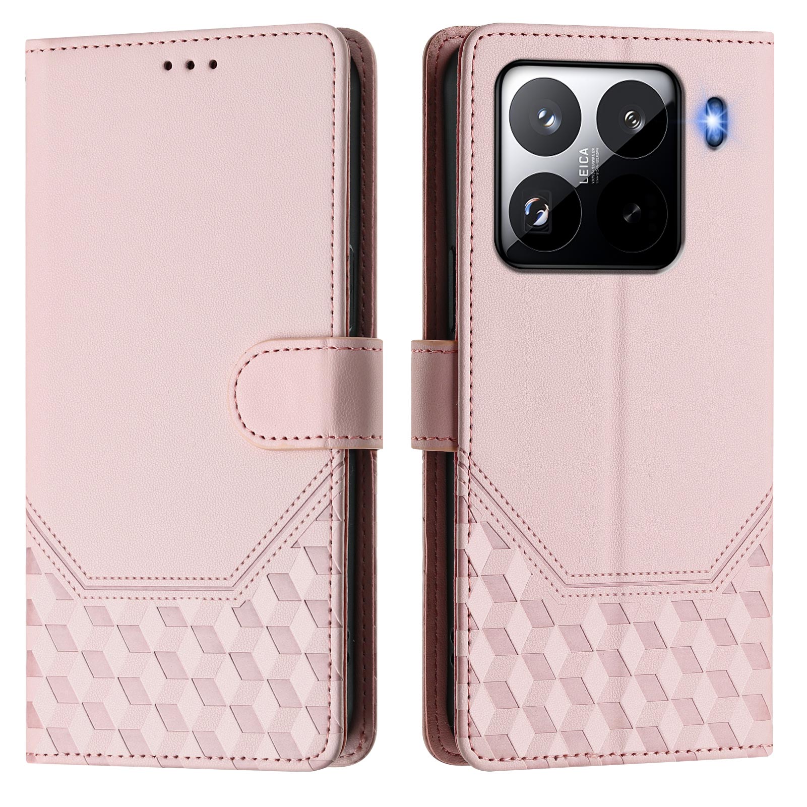 For Xiaomi 15 Pro Case Imprinted Honeycomb RFID Blocking Leather Phone Cover with Strap - Pink