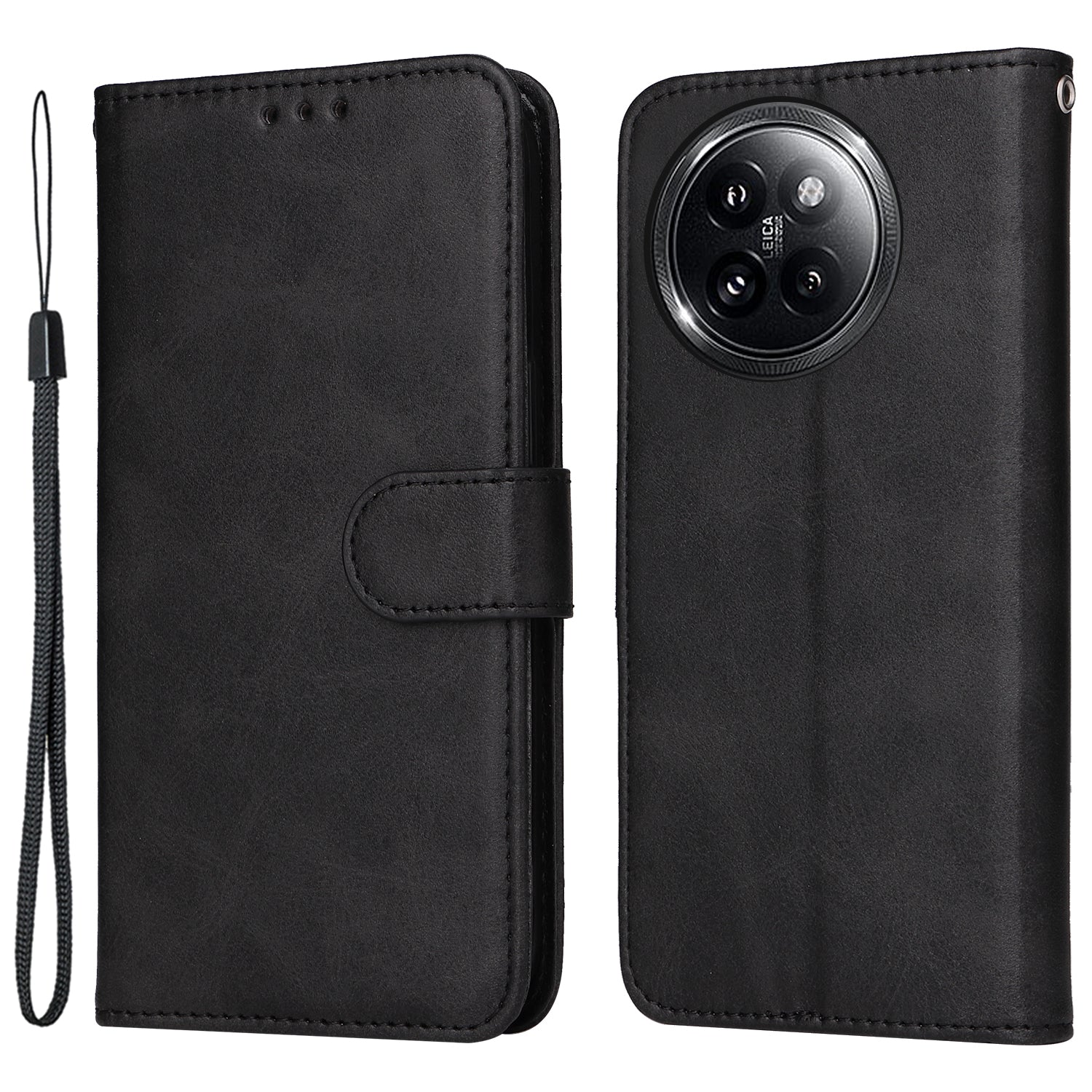 For Xiaomi Civi 4 Pro 5G Case 3 Slots Holder Leather Phone Wallet Cover with Hand Strap - Black