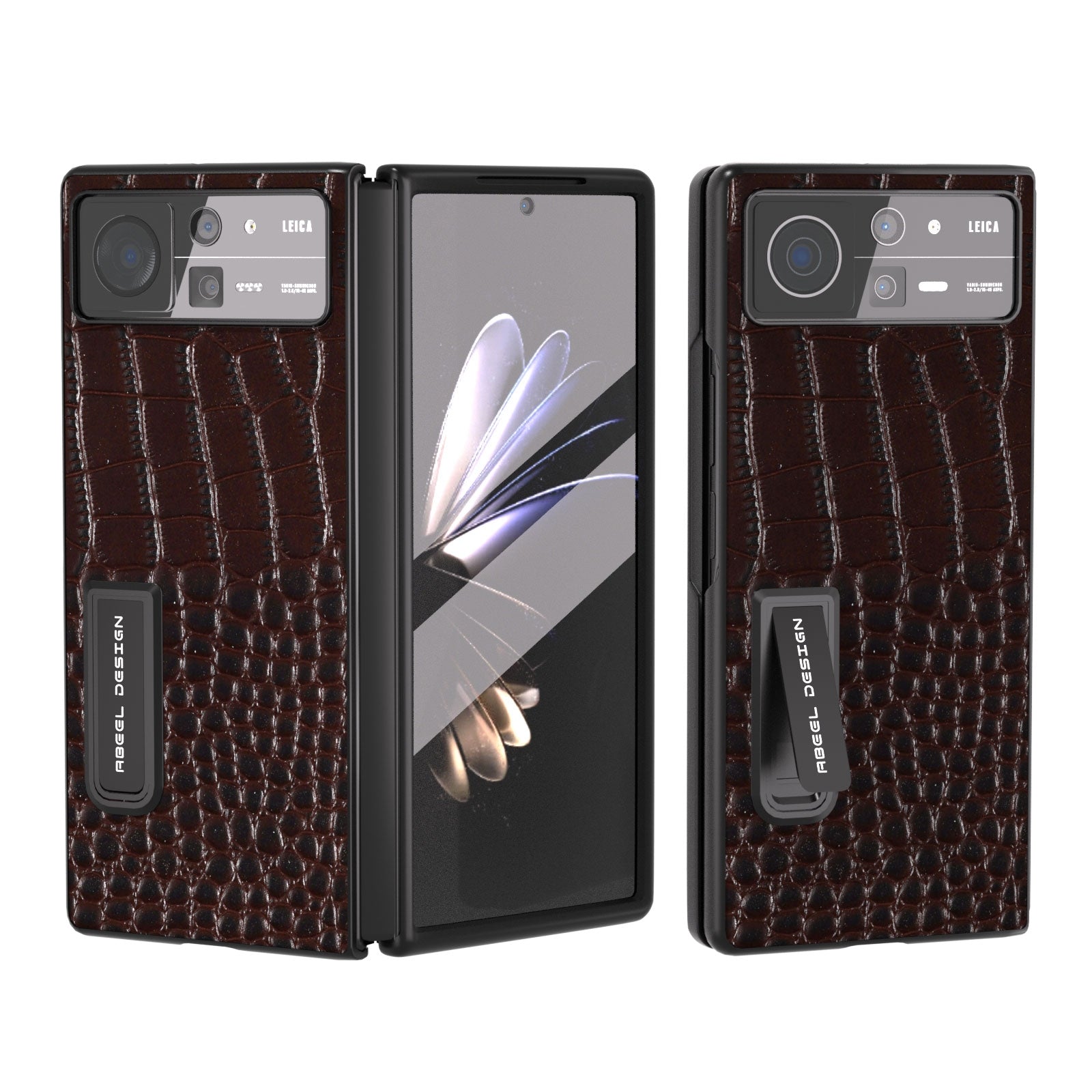 For Xiaomi Mix Fold 2 ABEEL Integrated Genuine Leather Crocodile Pattern Phone Case with Holder(Coffee)
