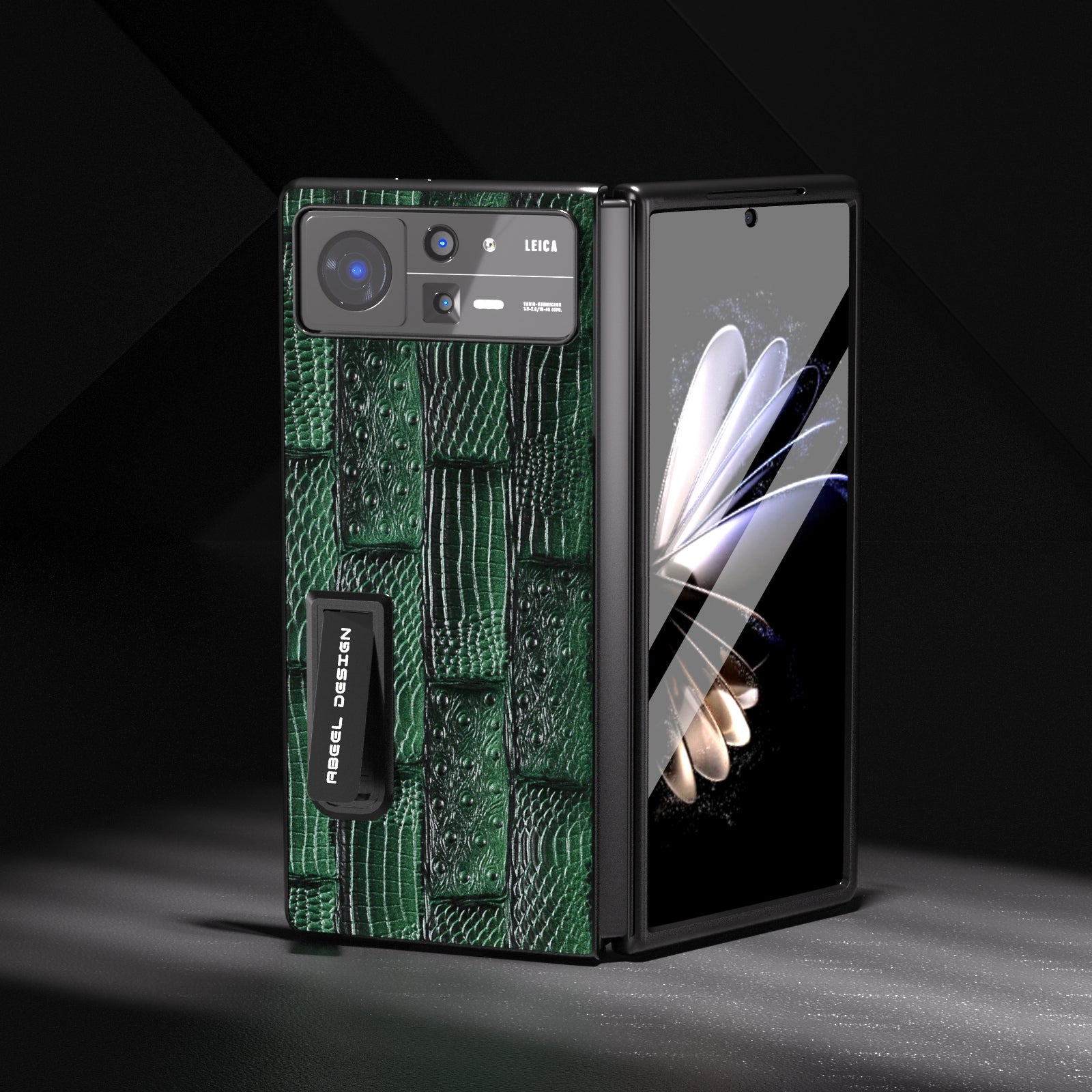 For Xiaomi Mix Fold 2 ABEEL Integrated Genuine Leather Mahjong Texture Series Phone Case with Holder(Green)