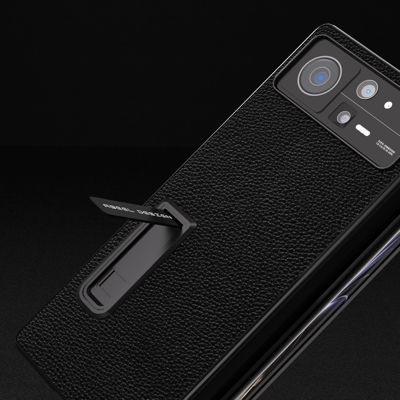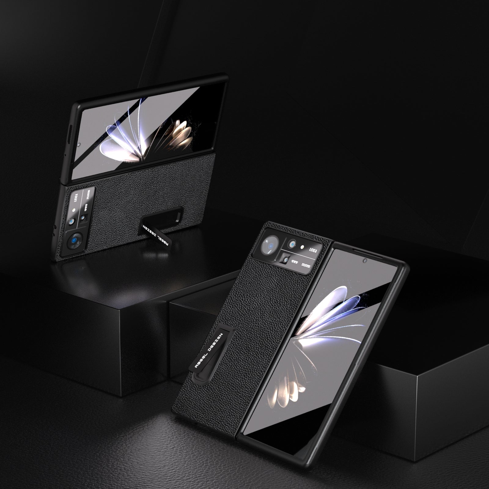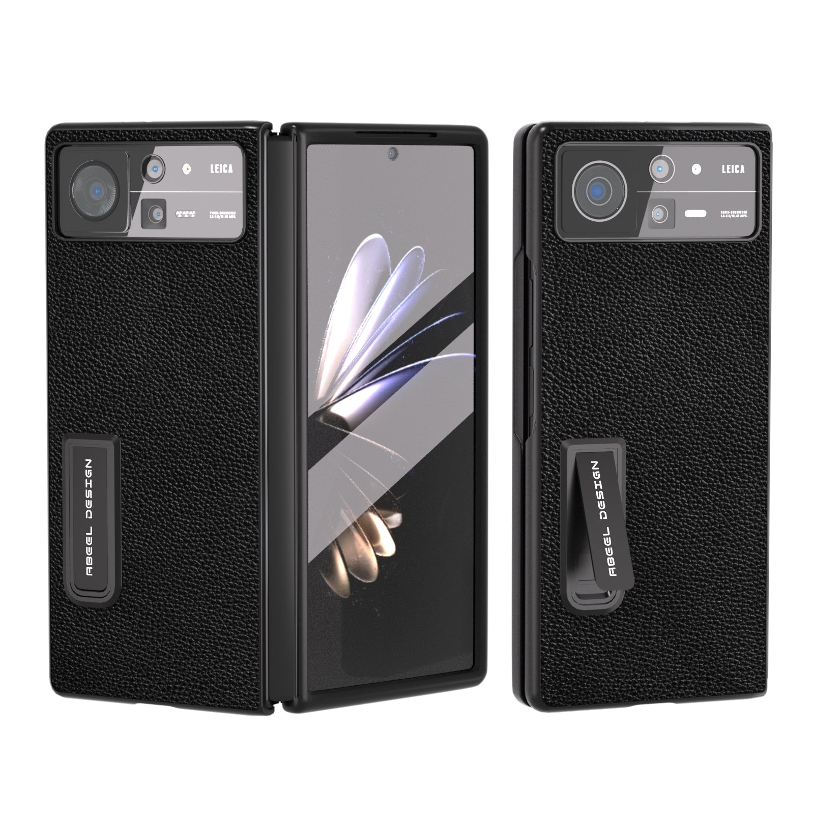 For Xiaomi Mix Fold 2 Integrated Black Edge Genuine Leather Mino Phone Case with Holder(Black)