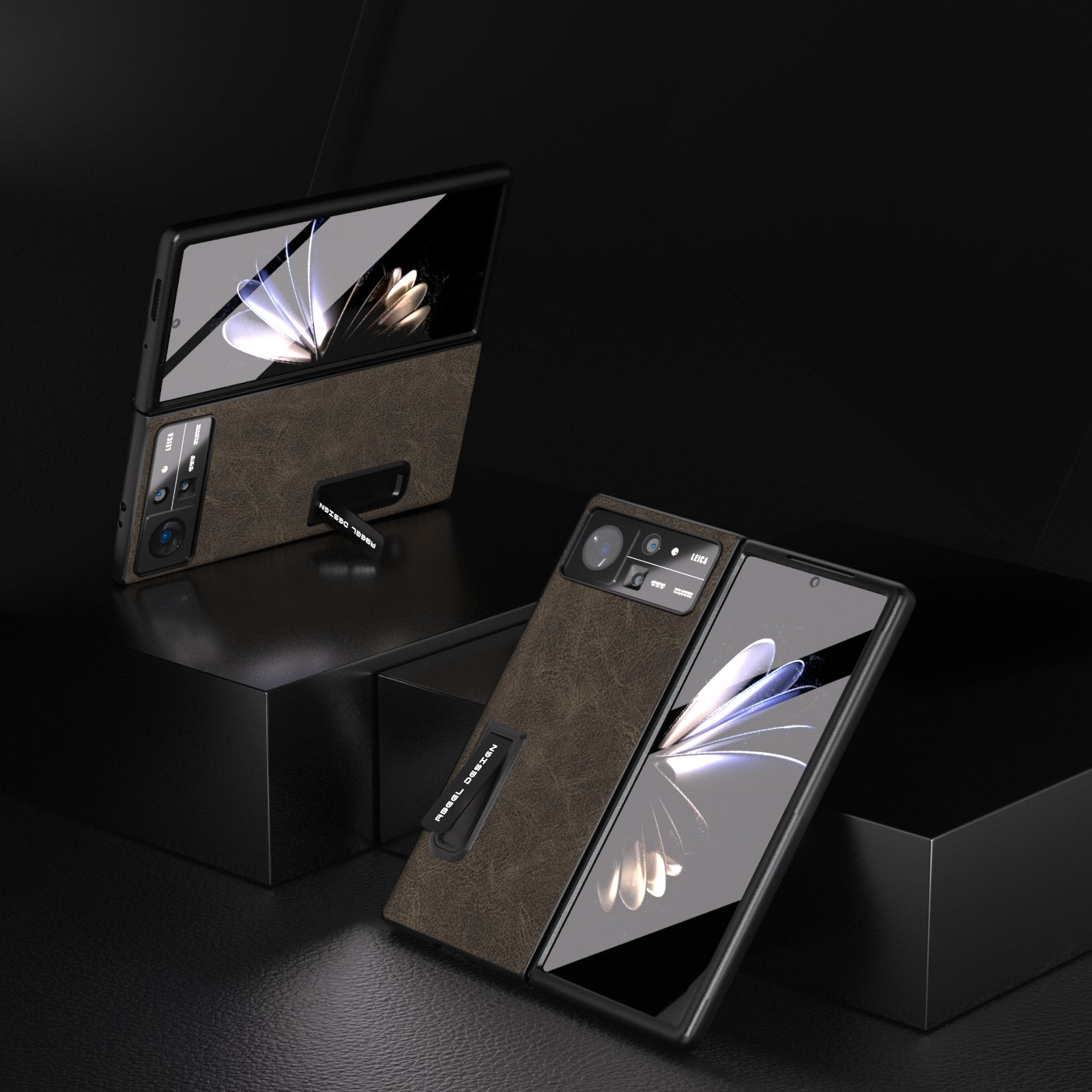 For Xiaomi Mix Fold 2 Integrated Dream Litchi Texture PU Phone Case with Holder(Khaki)