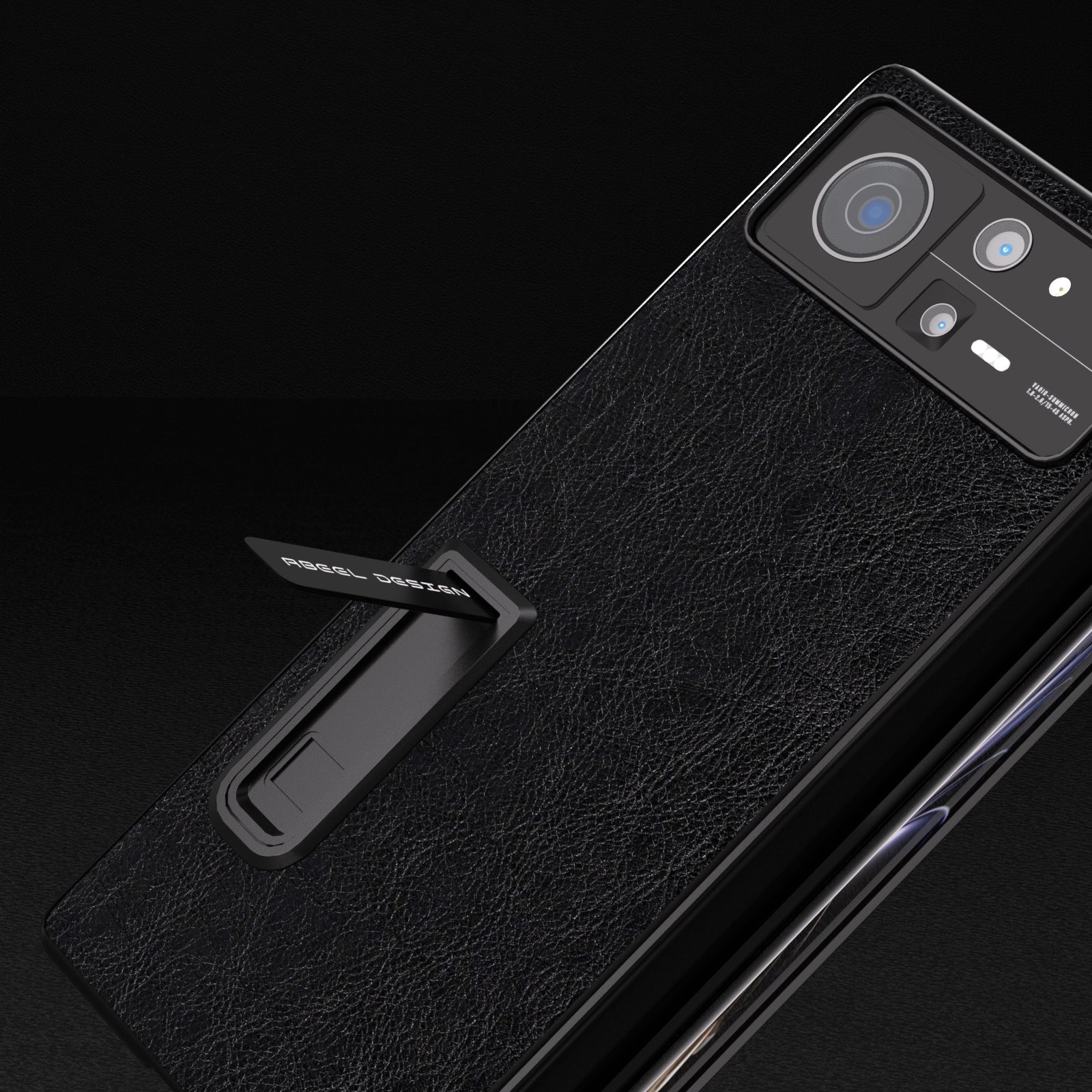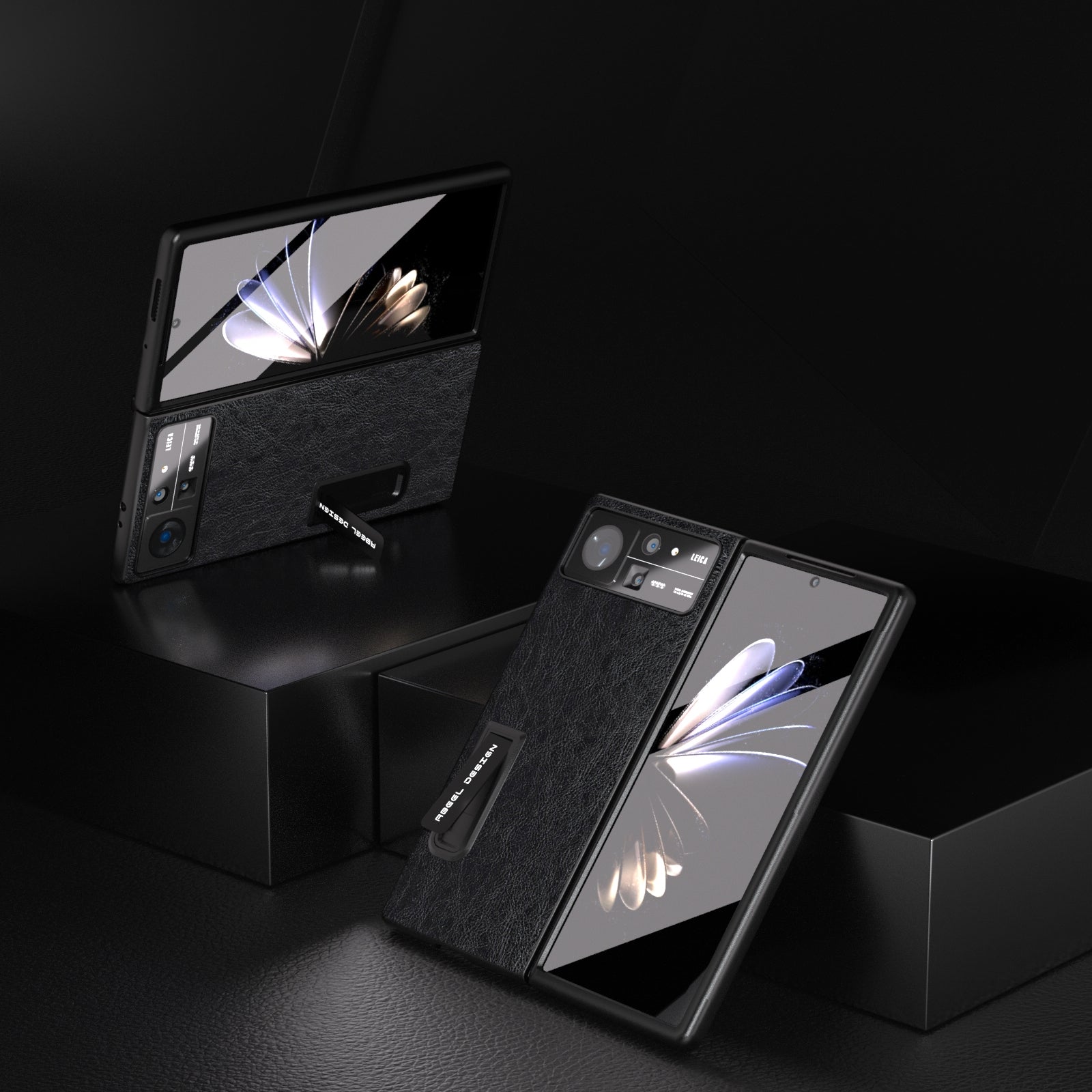 For Xiaomi Mix Fold 2 Integrated Retro Litchi Texture PU Phone Case with Holder(Black)