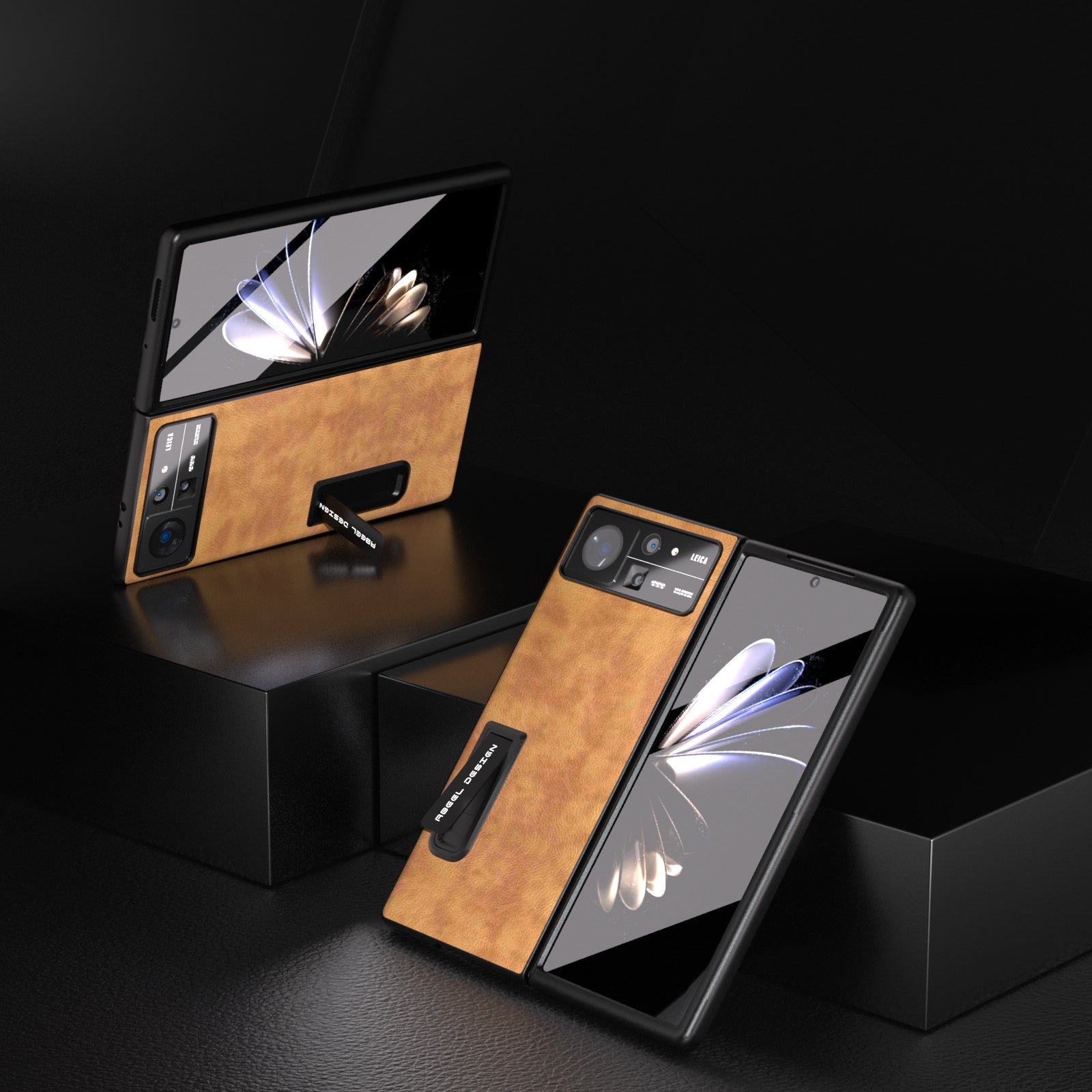 For Xiaomi Mix Fold 2 Integrated Retro Litchi Texture PU Phone Case with Holder(Brown)