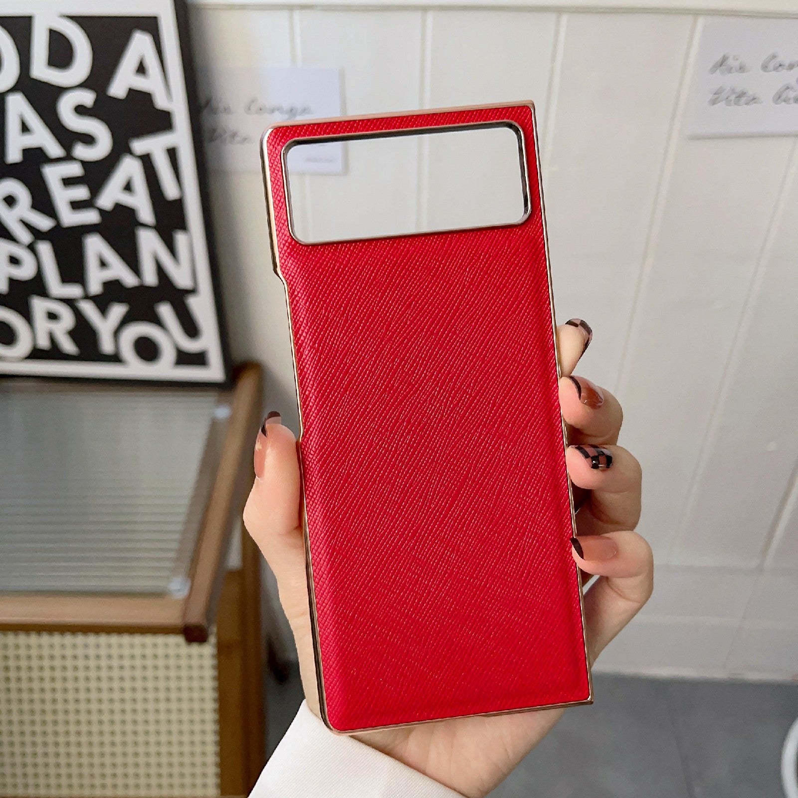 For Xiaomi Mix Fold 2 Nano Electroplating Cross Texture Genuine Leather Phone Case(Red)