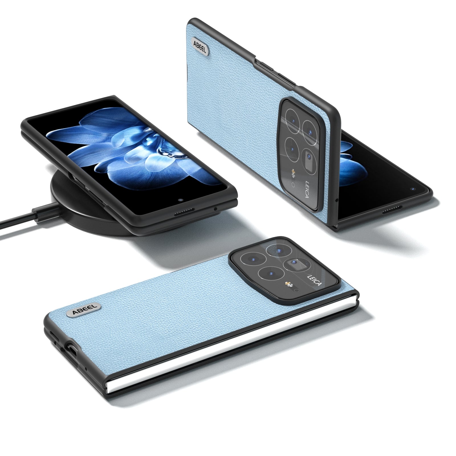 For Xiaomi Mix Fold 4 ABEEL Black Edge Genuine Leather Mino Phone Case(Blue)