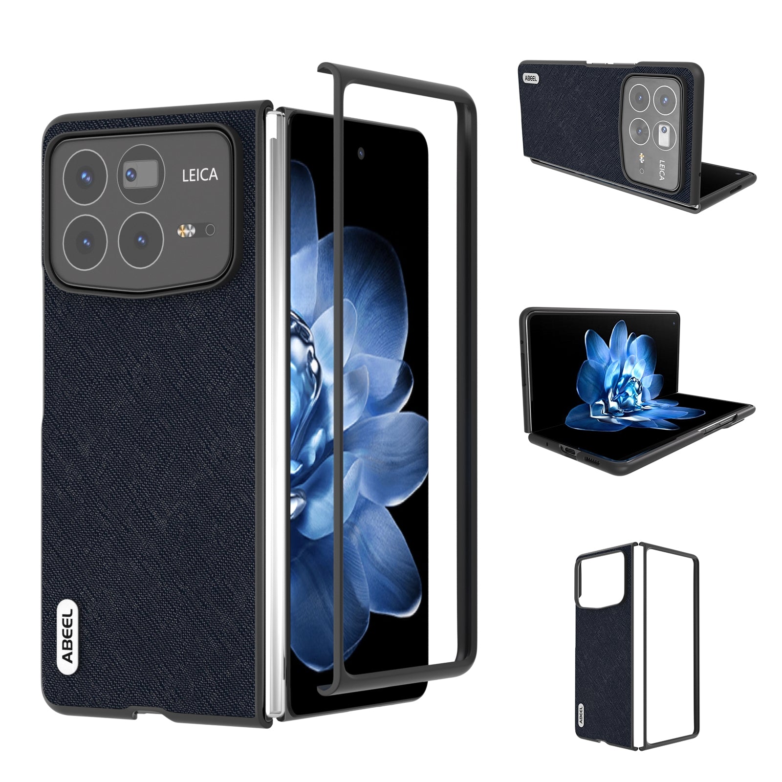 For Xiaomi Mix Fold 4 ABEEL Cross Texture Genuine Leather Phone Case(Blue)