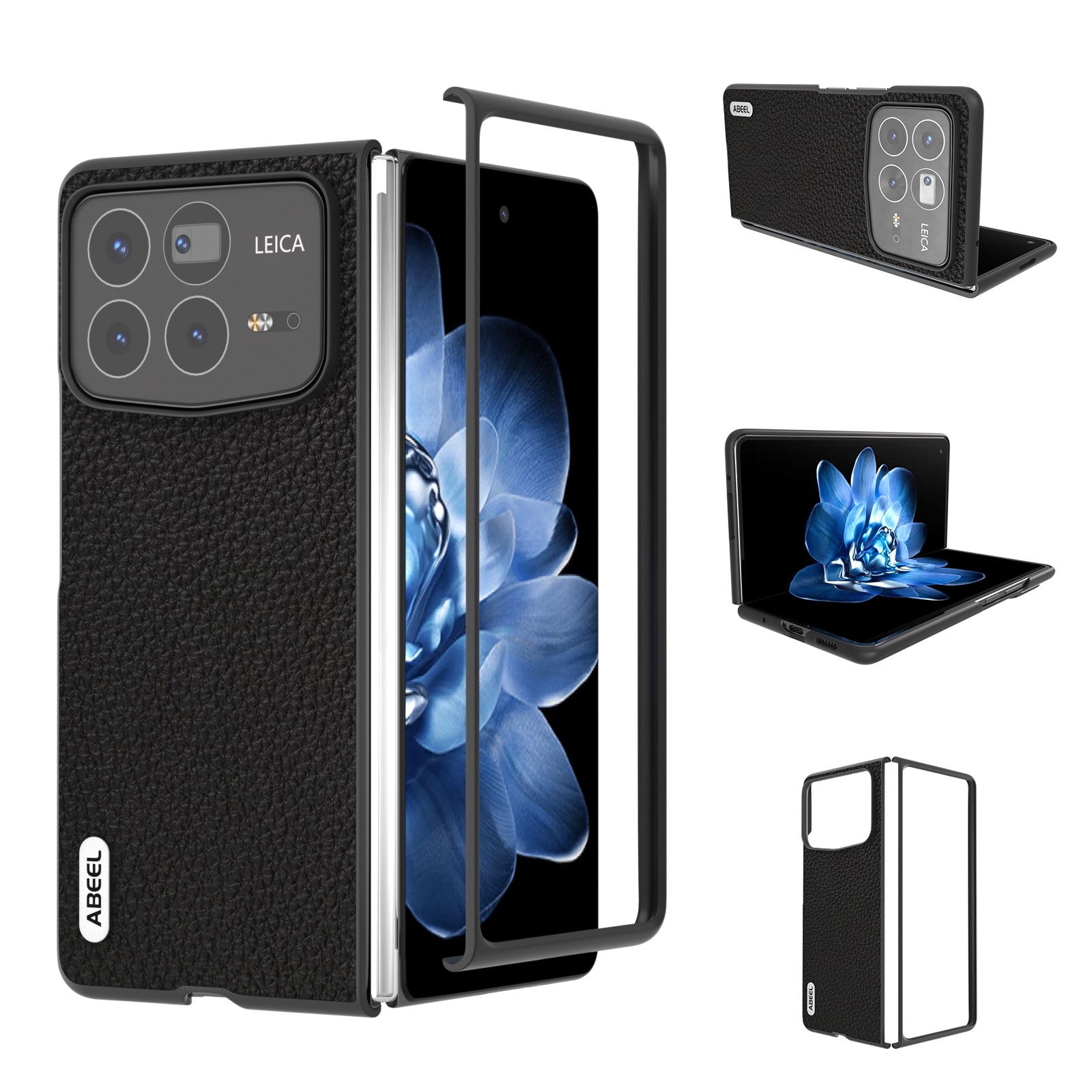 For Xiaomi Mix Fold 4 ABEEL Genuine Leather Litchi Texture Phone Case(Black)