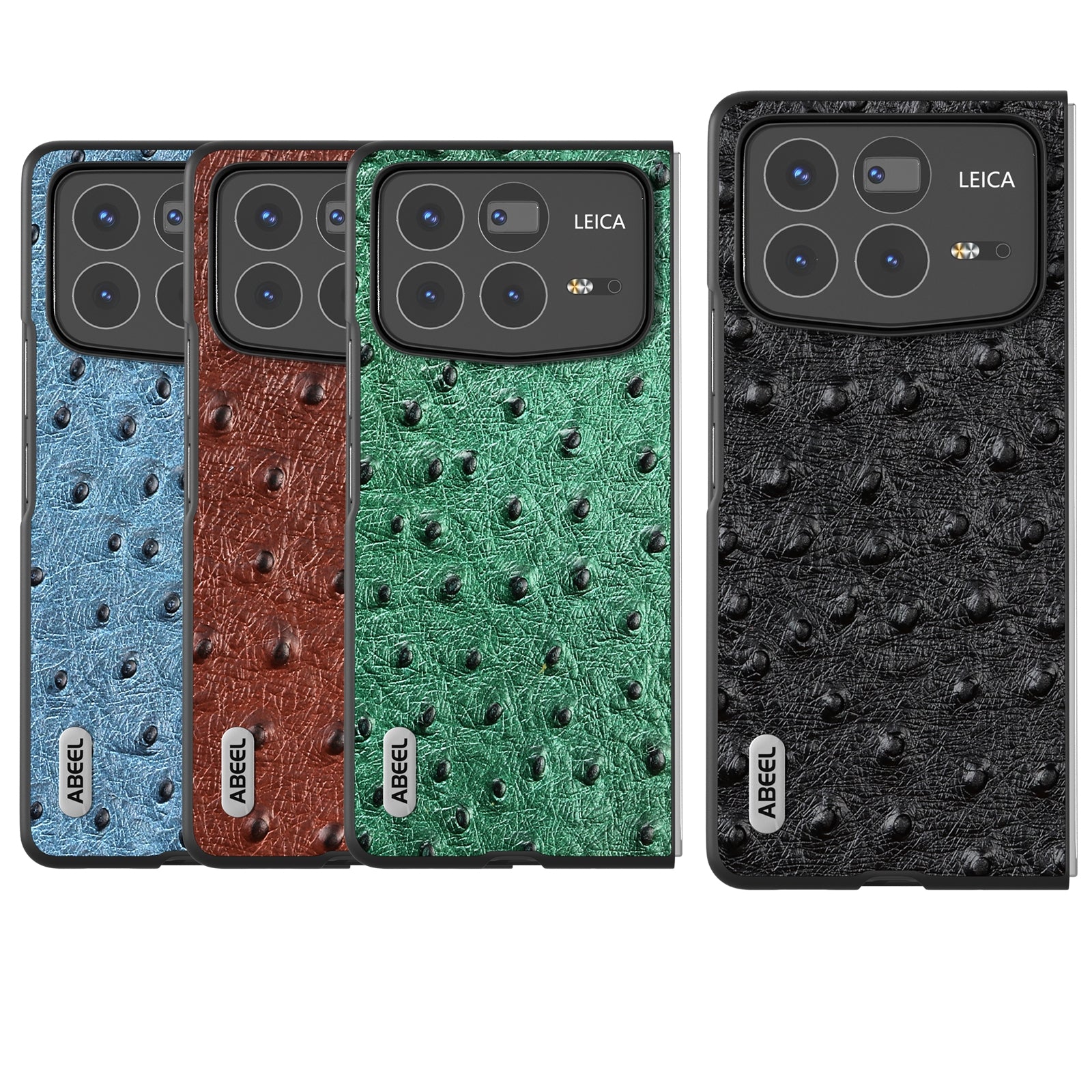 For Xiaomi Mix Fold 4 ABEEL Genuine Leather Ostrich Texture Phone Case(Blue)