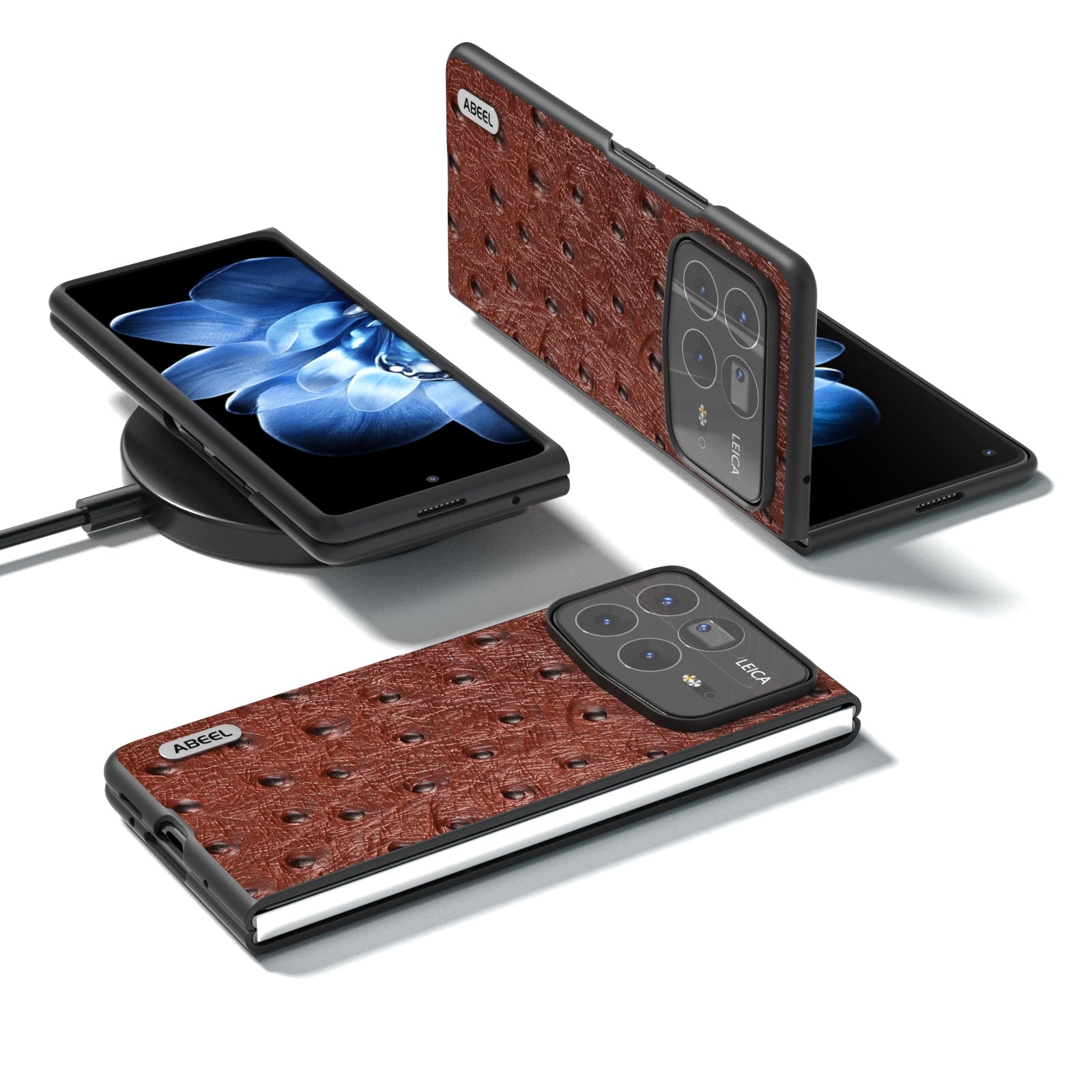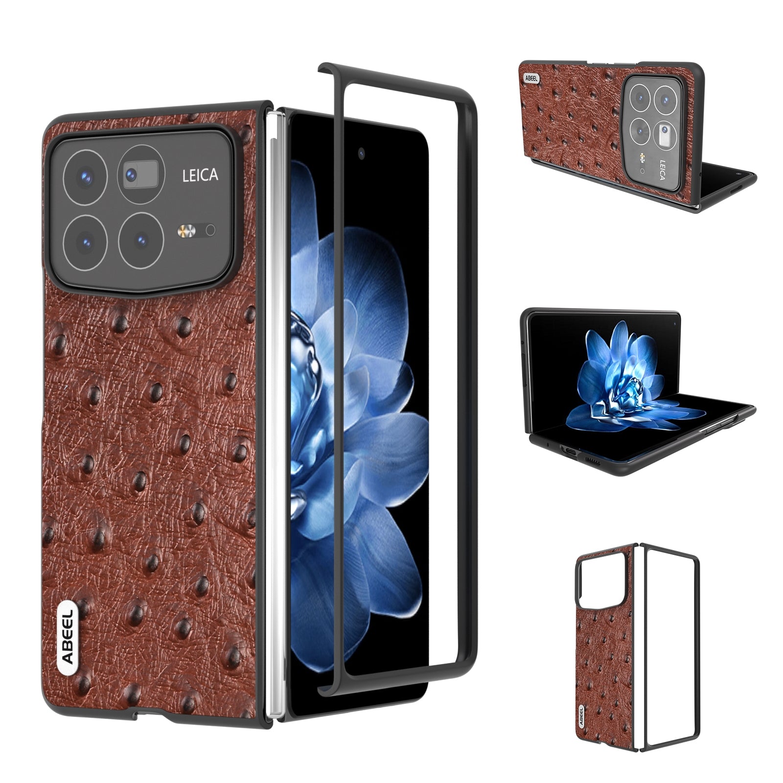 For Xiaomi Mix Fold 4 ABEEL Genuine Leather Ostrich Texture Phone Case(Coffee)