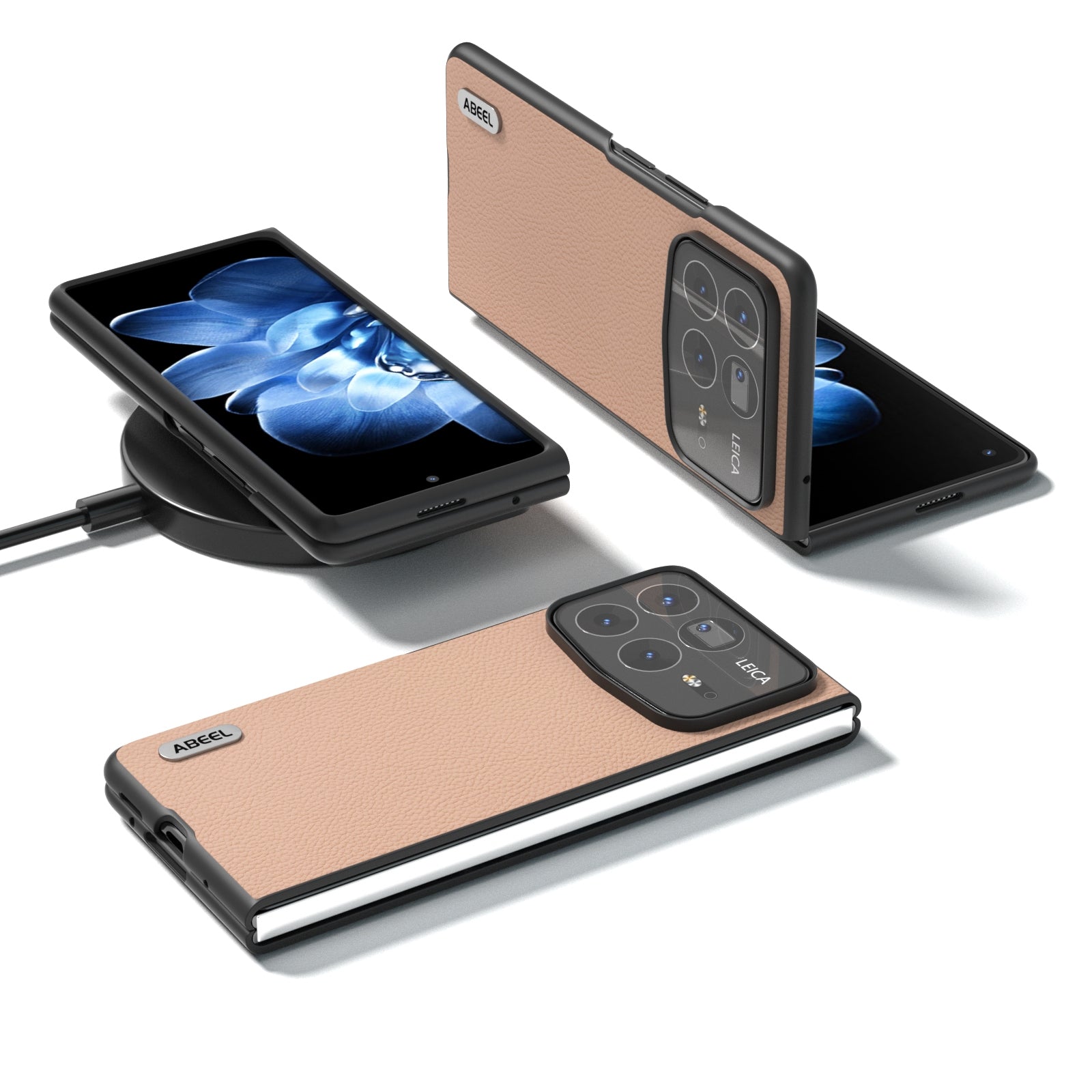 For Xiaomi Mix Fold 4 ABEEL Genuine Leather + PC Litchi Texture Phone Case(Pink Gold)