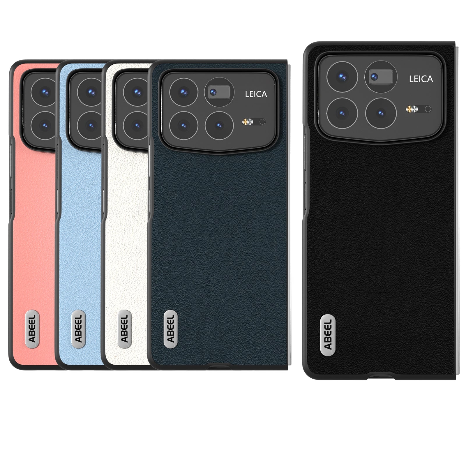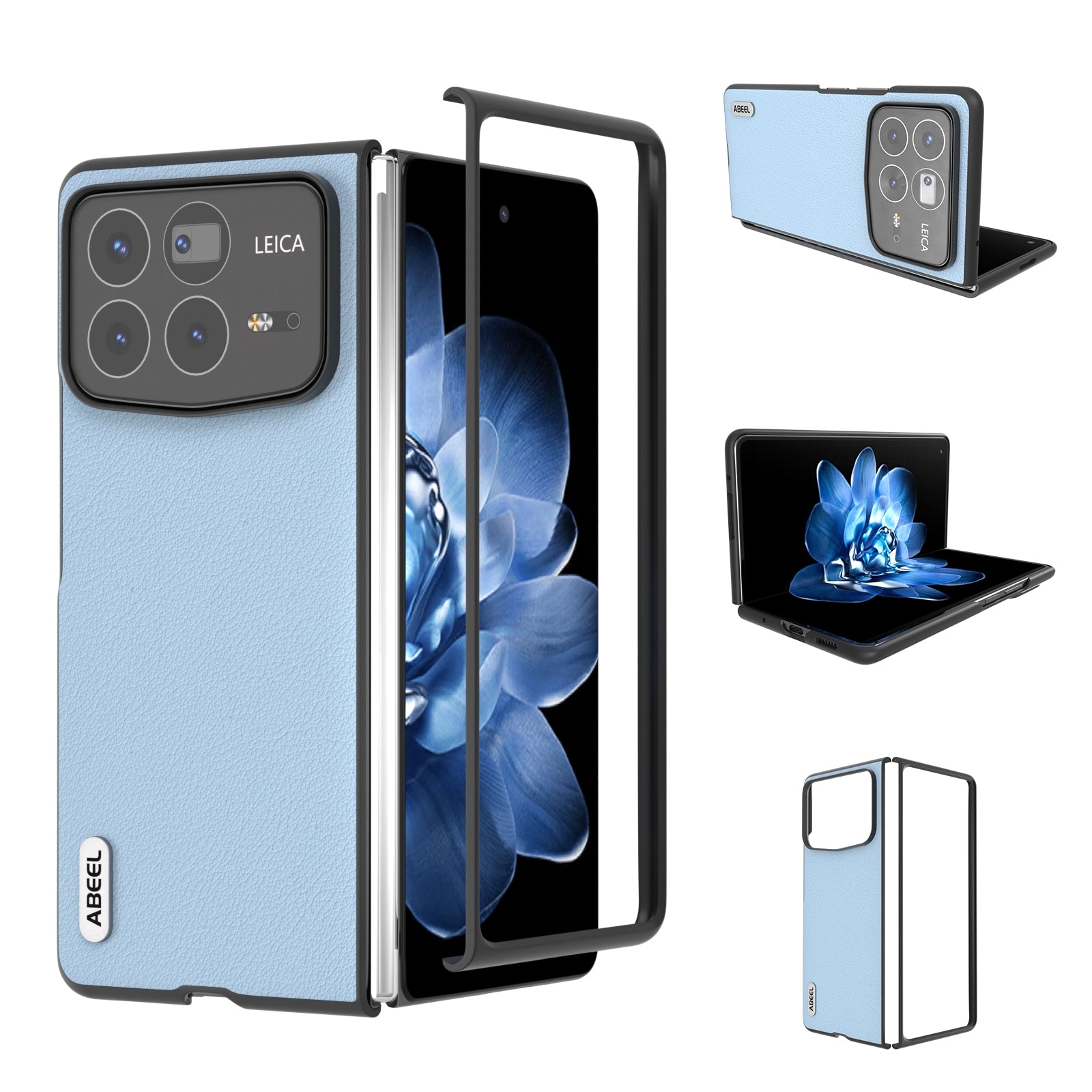 For Xiaomi Mix Fold 4 ABEEL Genuine Leather Wave Black Edge Phone Case(Blue)