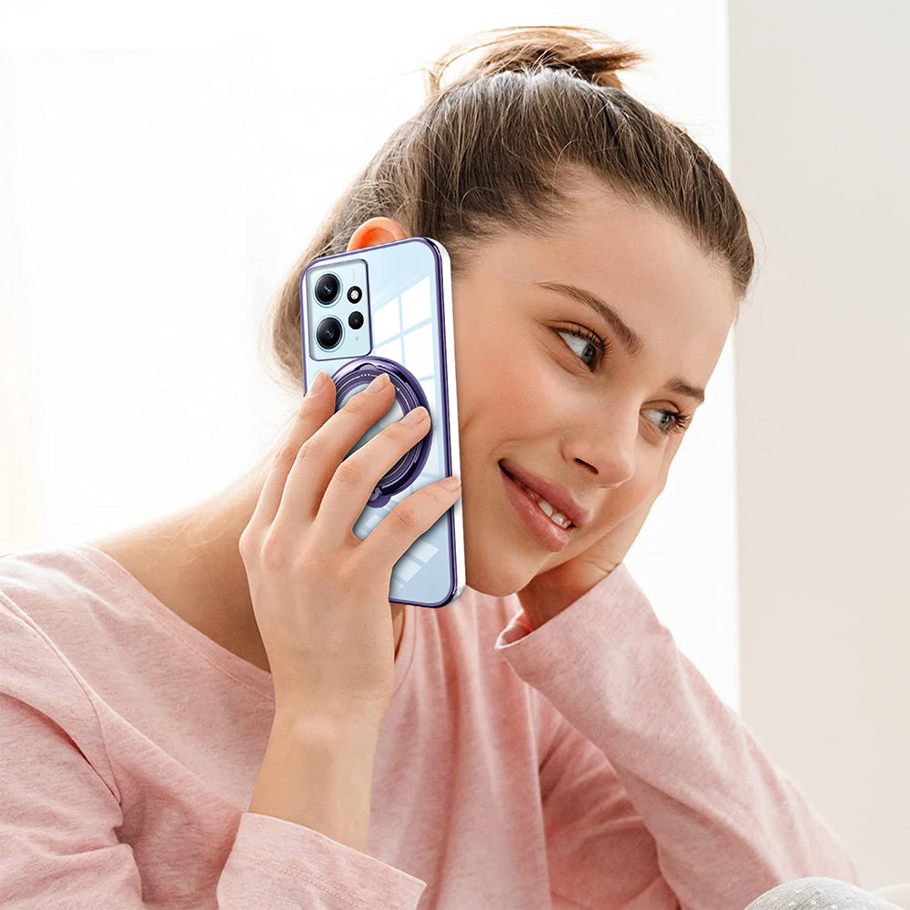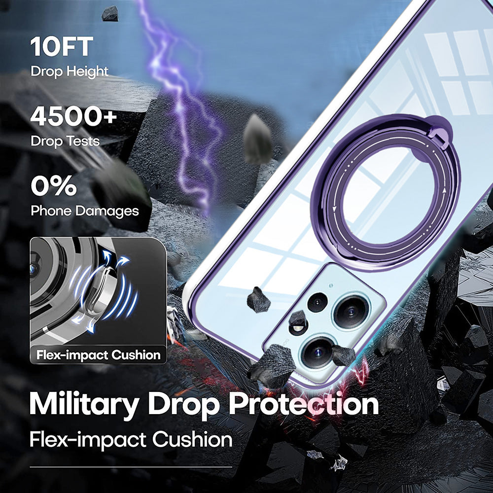 Uniqkart for Xiaomi Redmi Note 12 4G Anti-drop Phone Case PC+TPU Ring Kickstand Cover Compatible with MagSafe - Blue