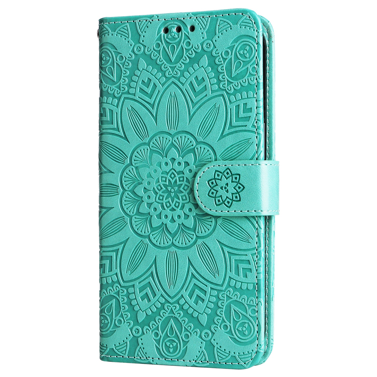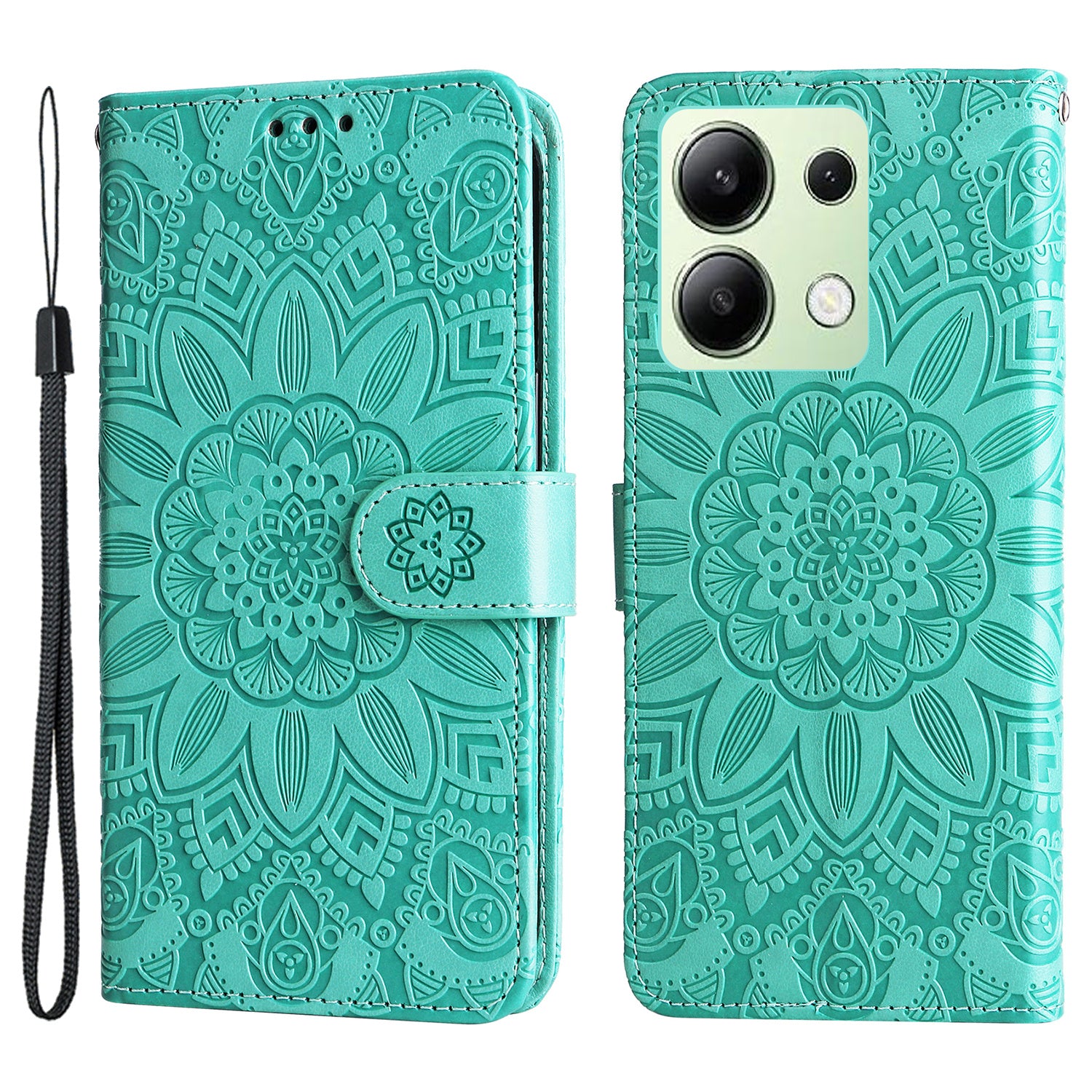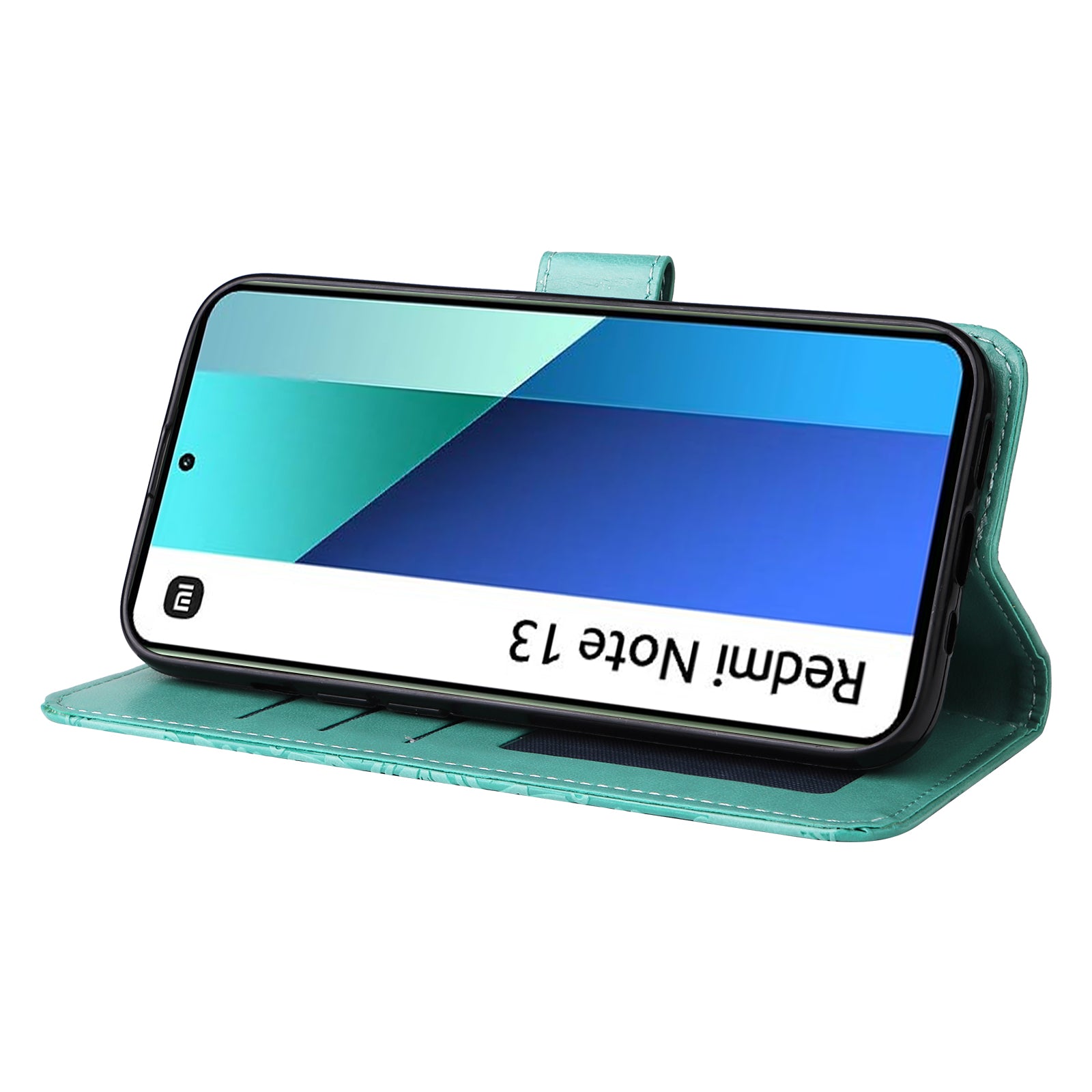 For Xiaomi Redmi Note 13 4G Case Wallet Imprinted Phone Cover with Hand Strap - Green