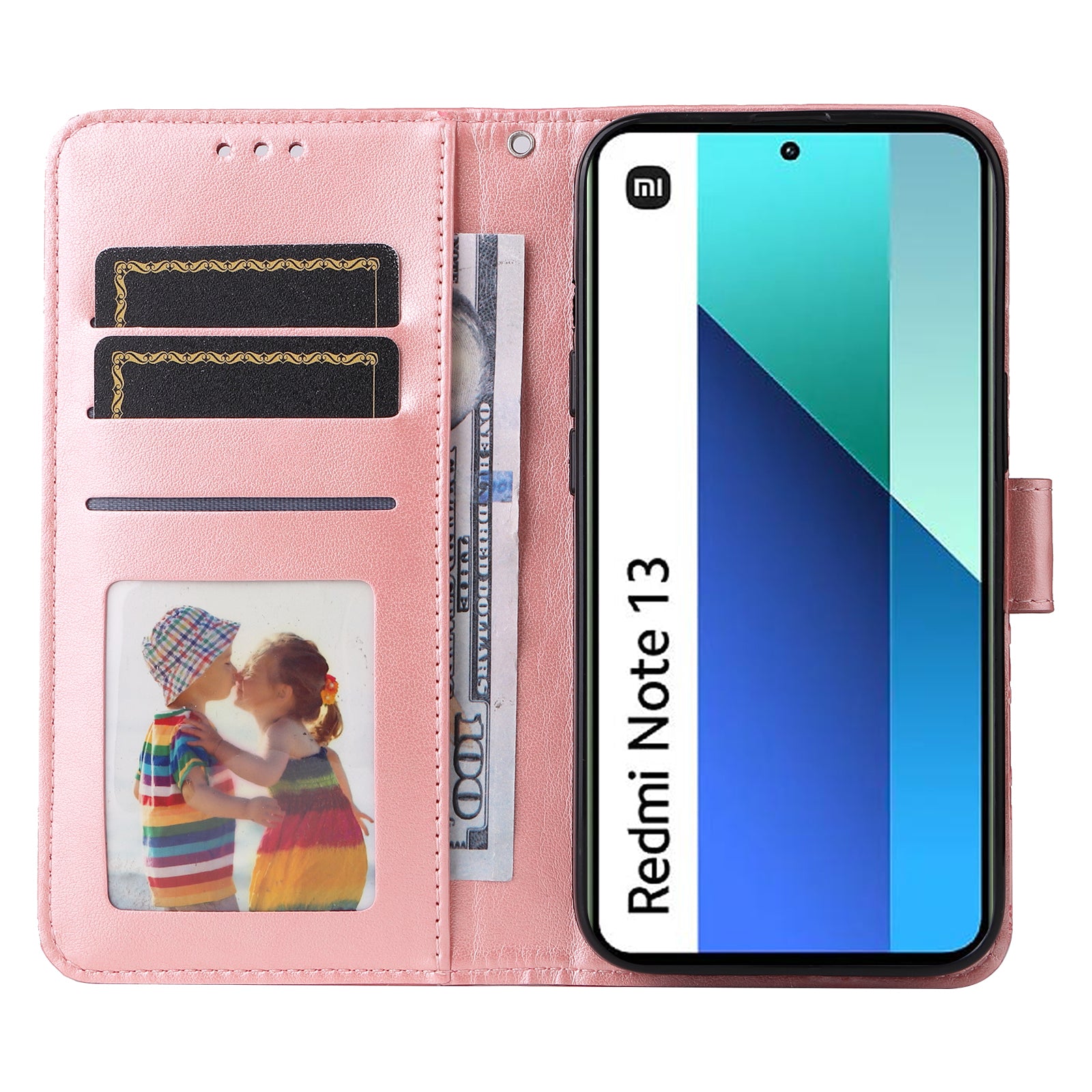 For Xiaomi Redmi Note 13 4G Case Wallet Imprinted Phone Cover with Hand Strap - Pink
