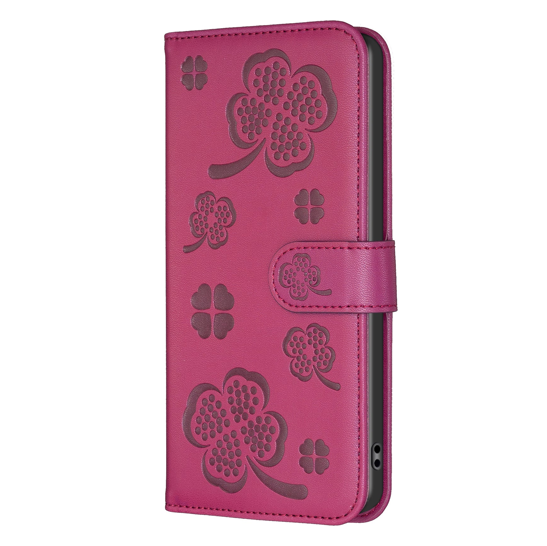 For Xiaomi Redmi Note 13 4G Clover Leather Case Folio Stand View Phone Cover - Rose