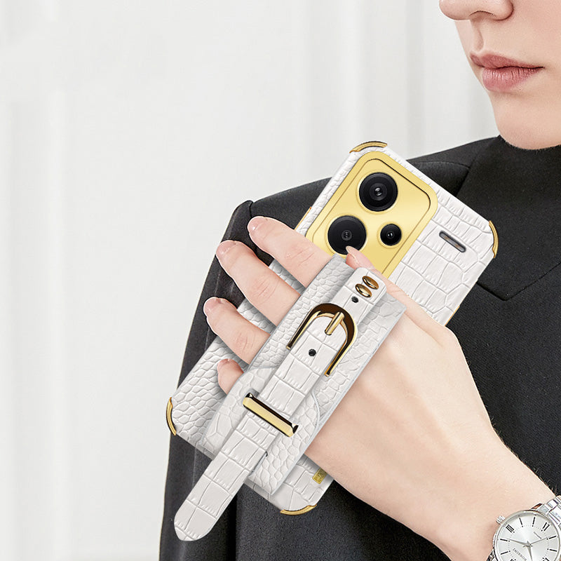 For Xiaomi Redmi Note 13 Pro+ 5G Case Crocodile Texture Wristband Electroplating Phone Cover - Yellow