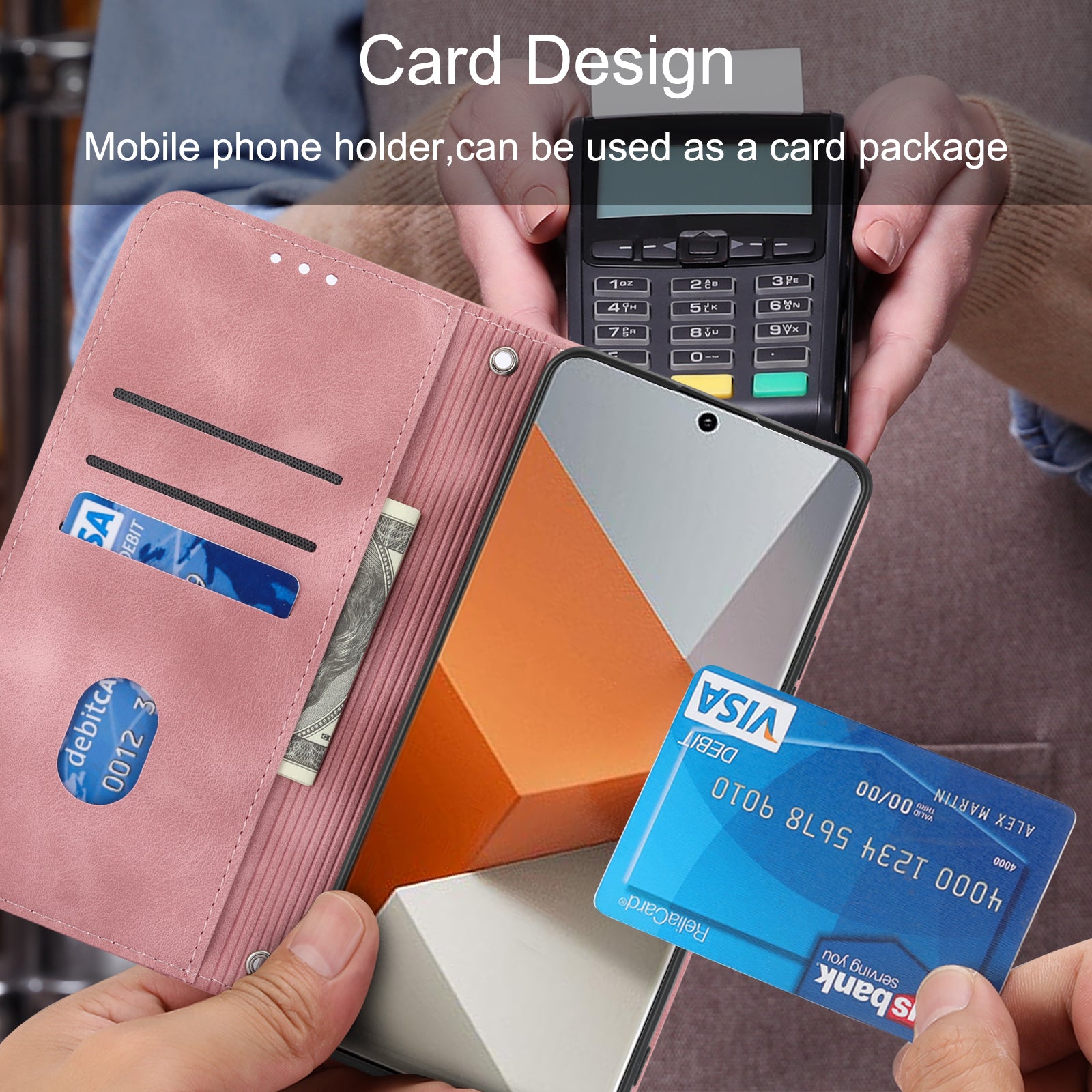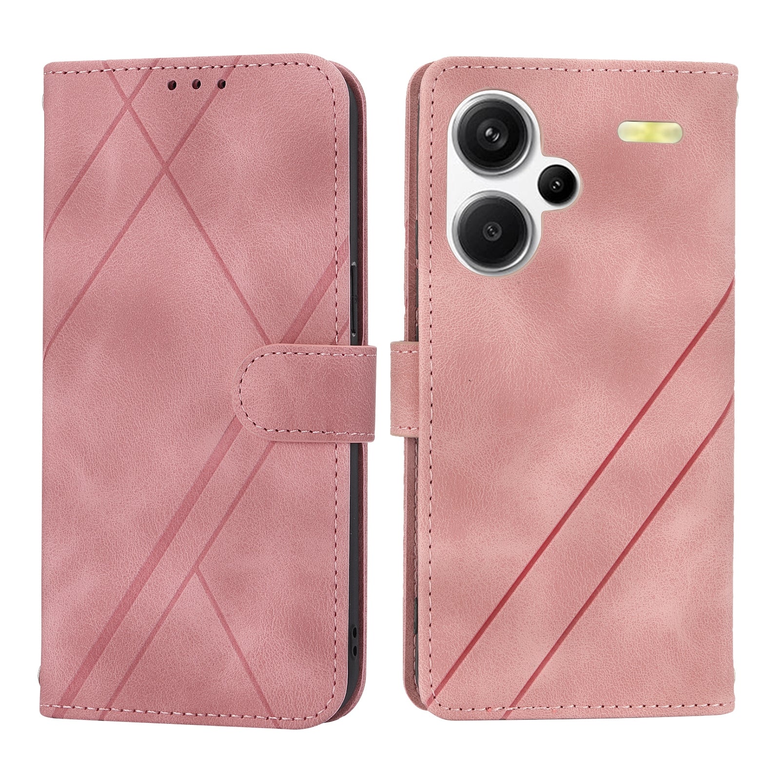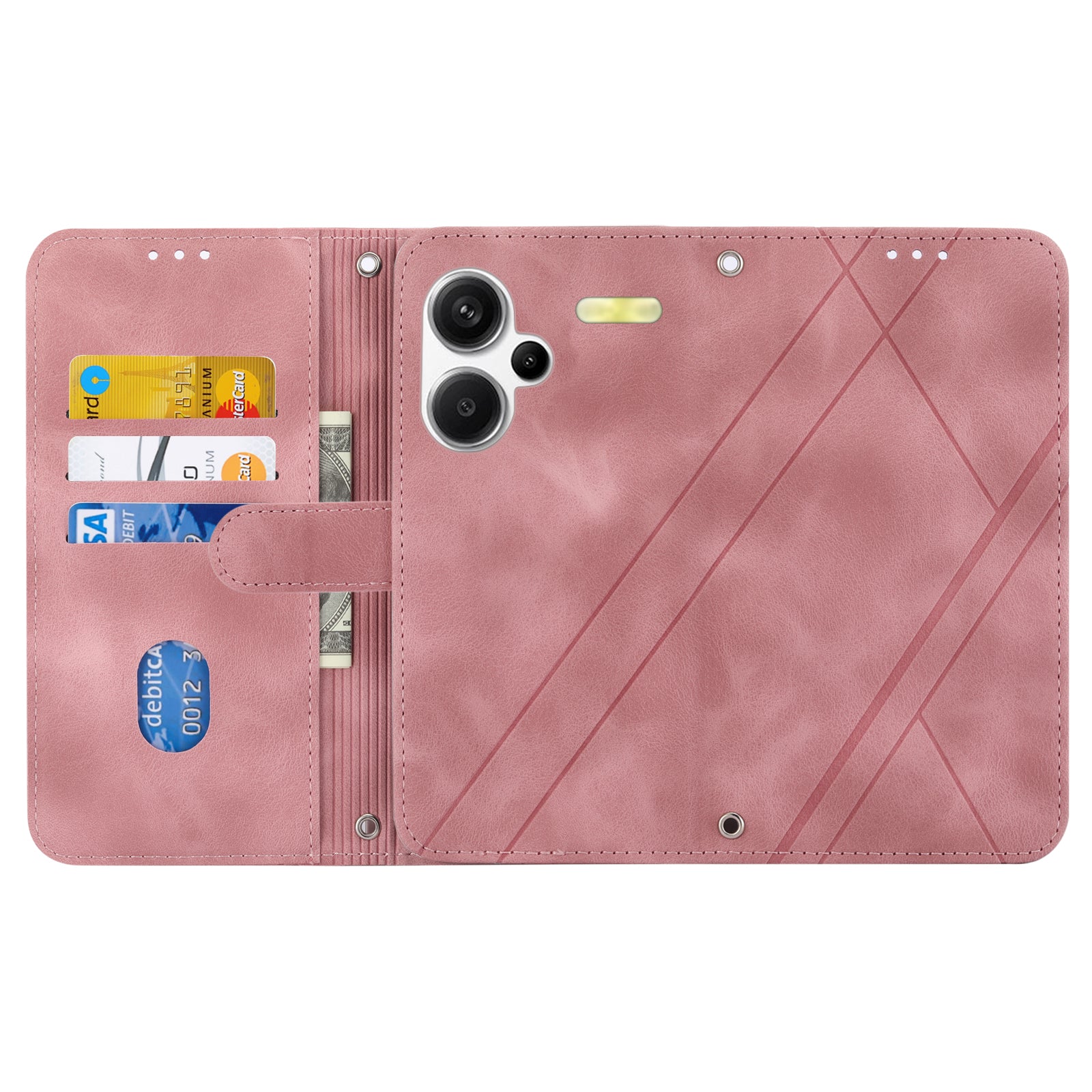 For Xiaomi Redmi Note 13 Pro+ 5G Case Imprinted Line Card Slots Shockproof Phone Cover - Pink