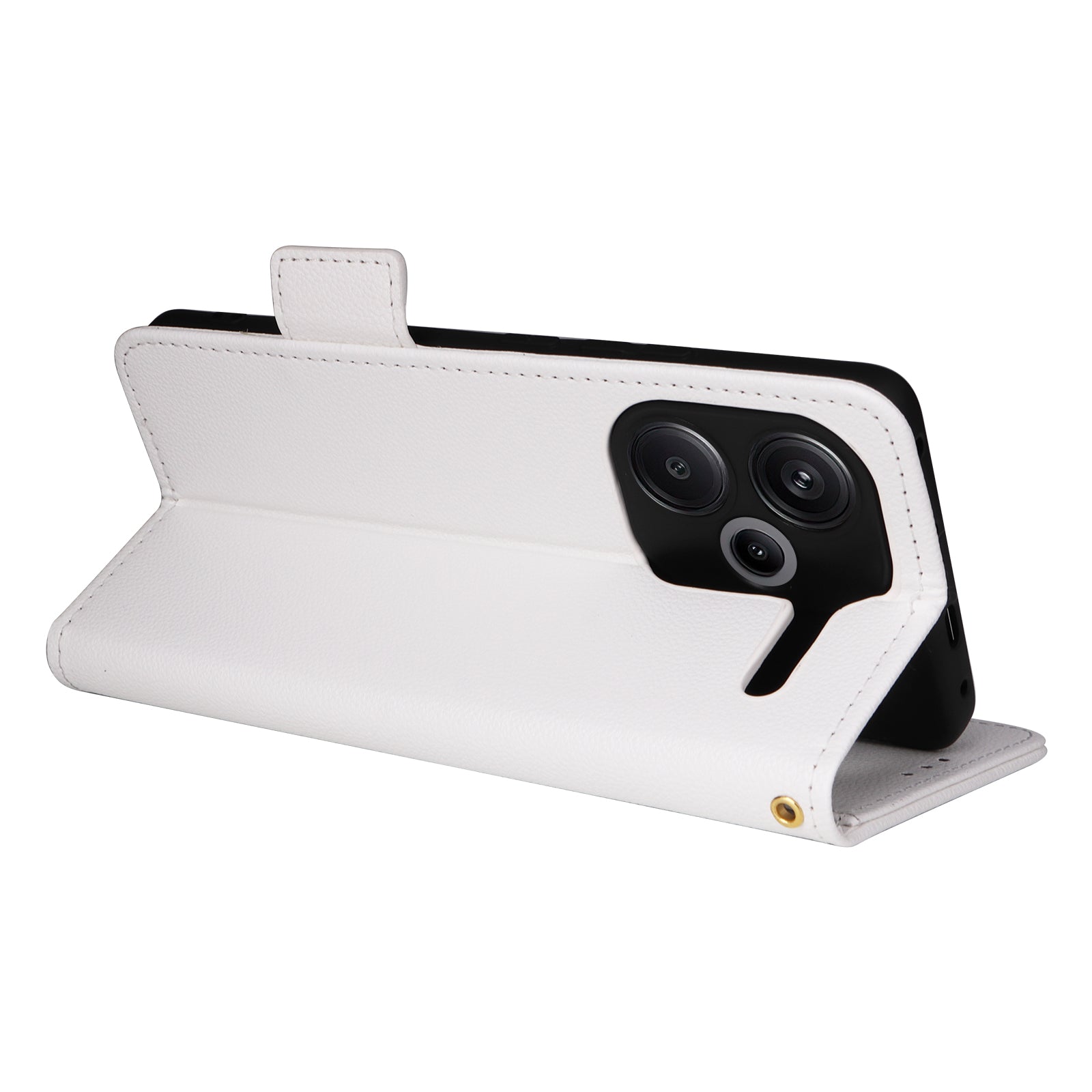 For Xiaomi Redmi Note 13 Pro+ 5G Case Litchi Texture PU Leather Wallet Phone Protector with Strap - White