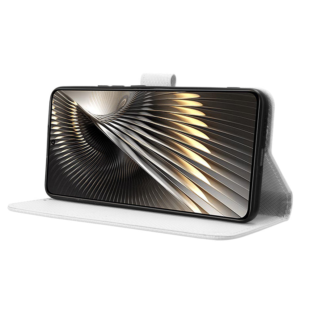 For Xiaomi Redmi Turbo 3 5G Case Diamond Texture Foldable Stand Phone Cover with Hand Strap - White