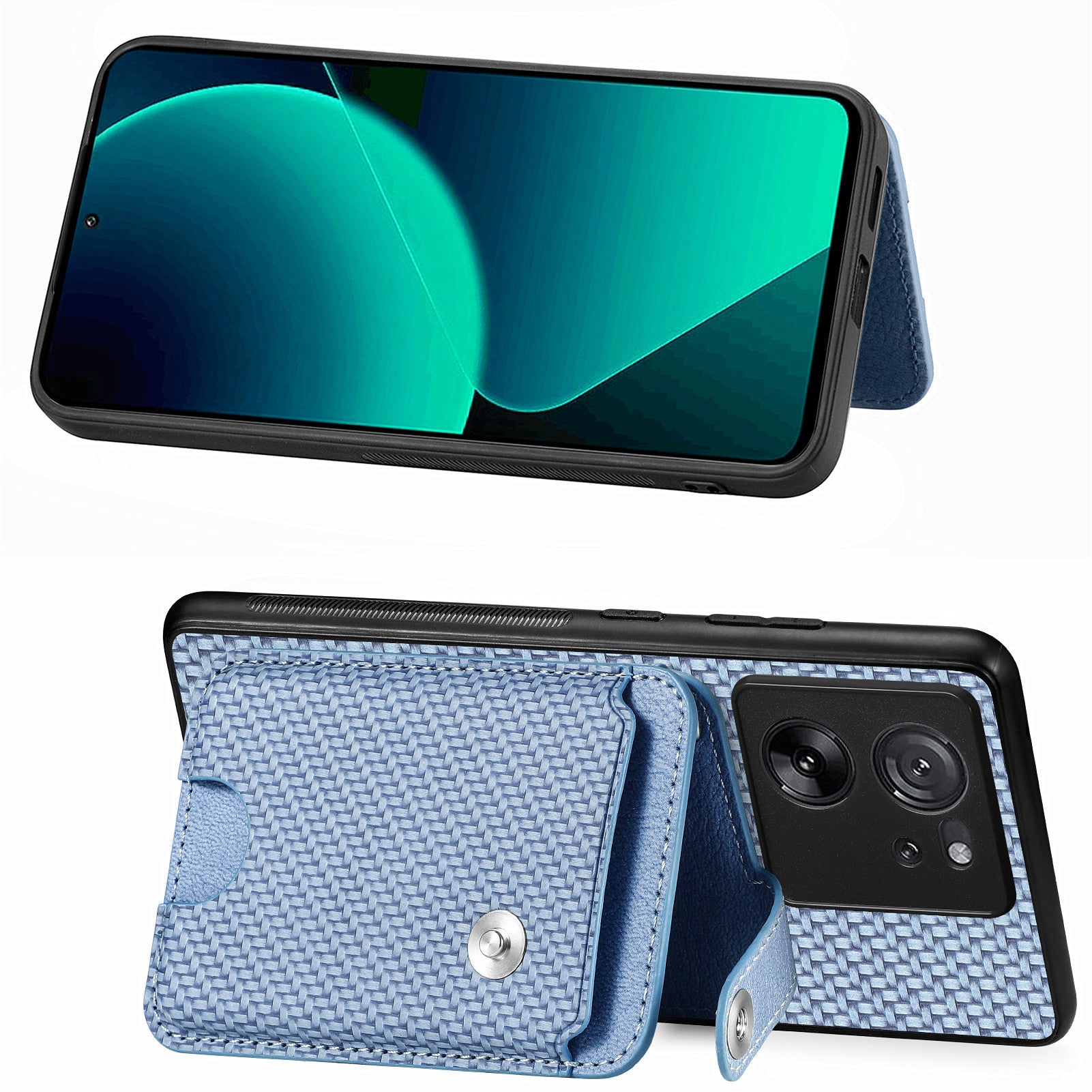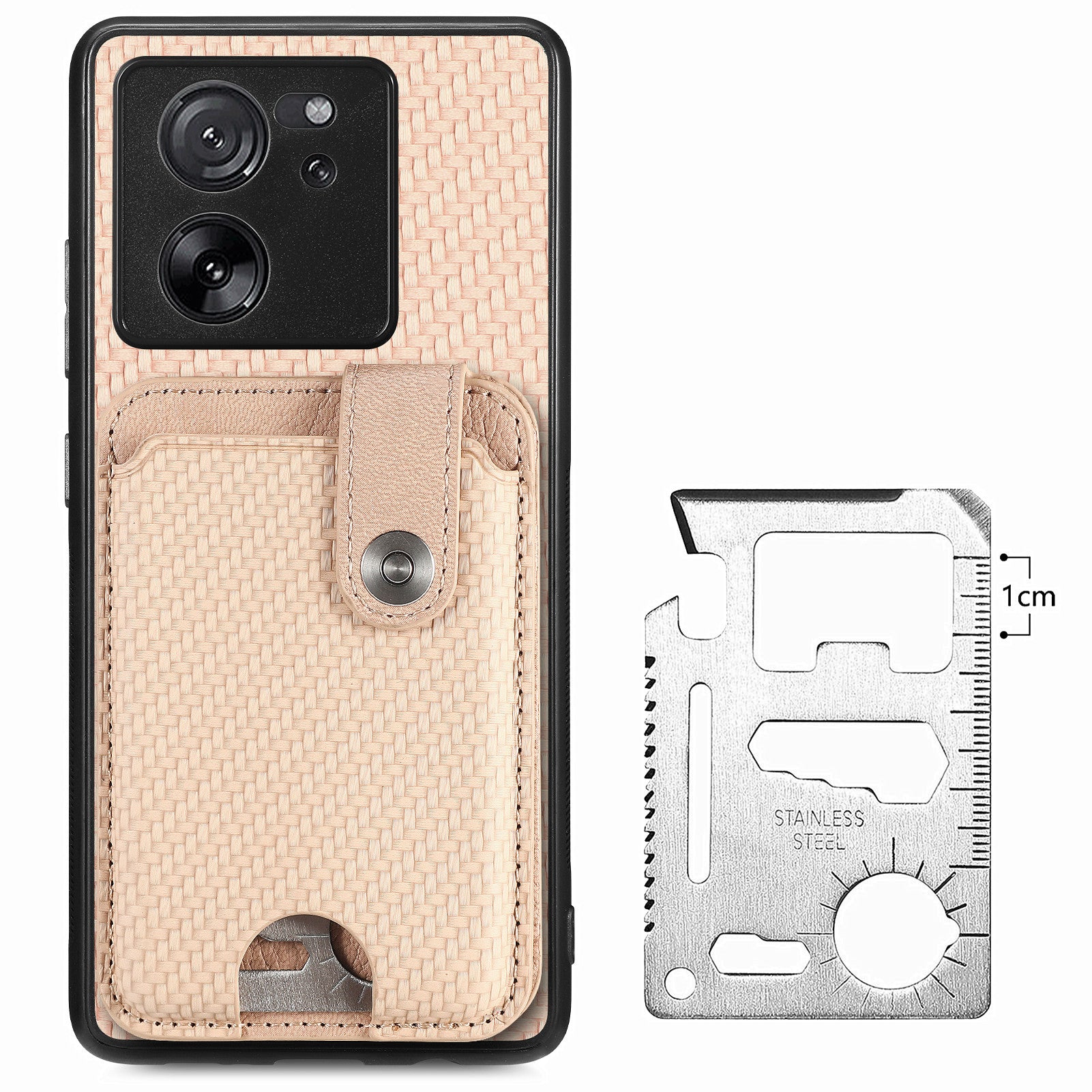 Style B C1-06 For Xiaomi 13T / 13T Pro / Redmi K60 Ultra Case PU+TPU Carbon Fiber Texture Card Holder Phone Cover - Khaki