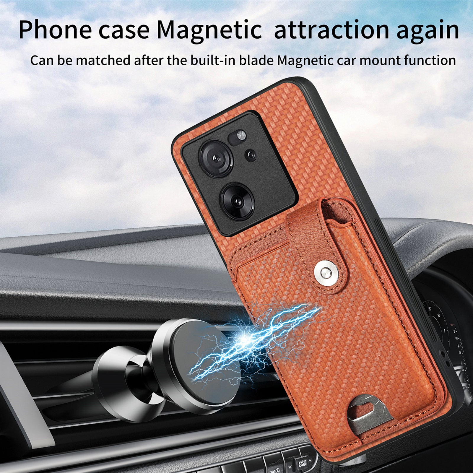 Style B C1-06 For Xiaomi 13T /  13T Pro / Redmi K60 Ultra Case PU+TPU Carbon Fiber Texture Card Holder Phone Cover - Khaki