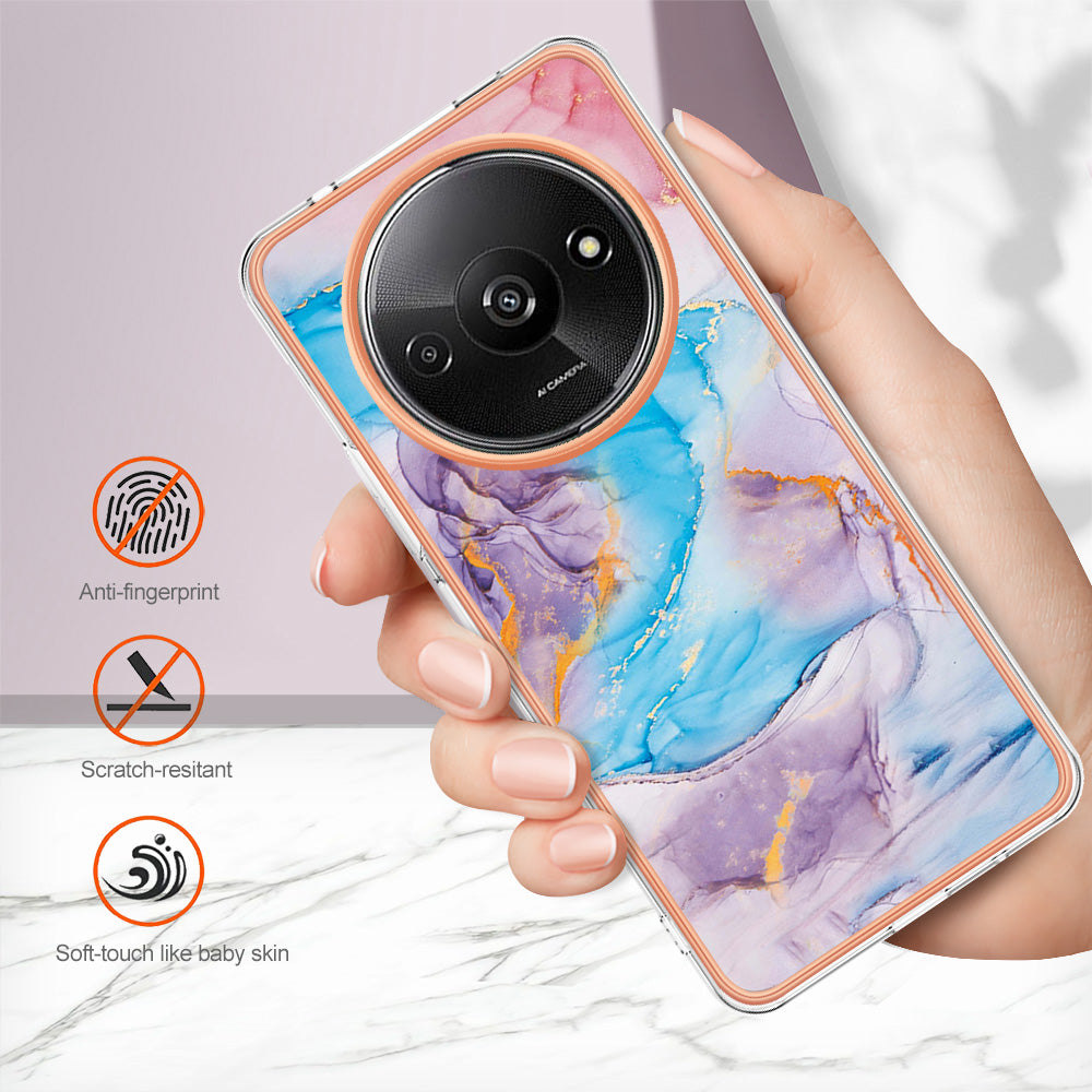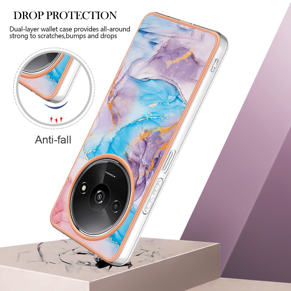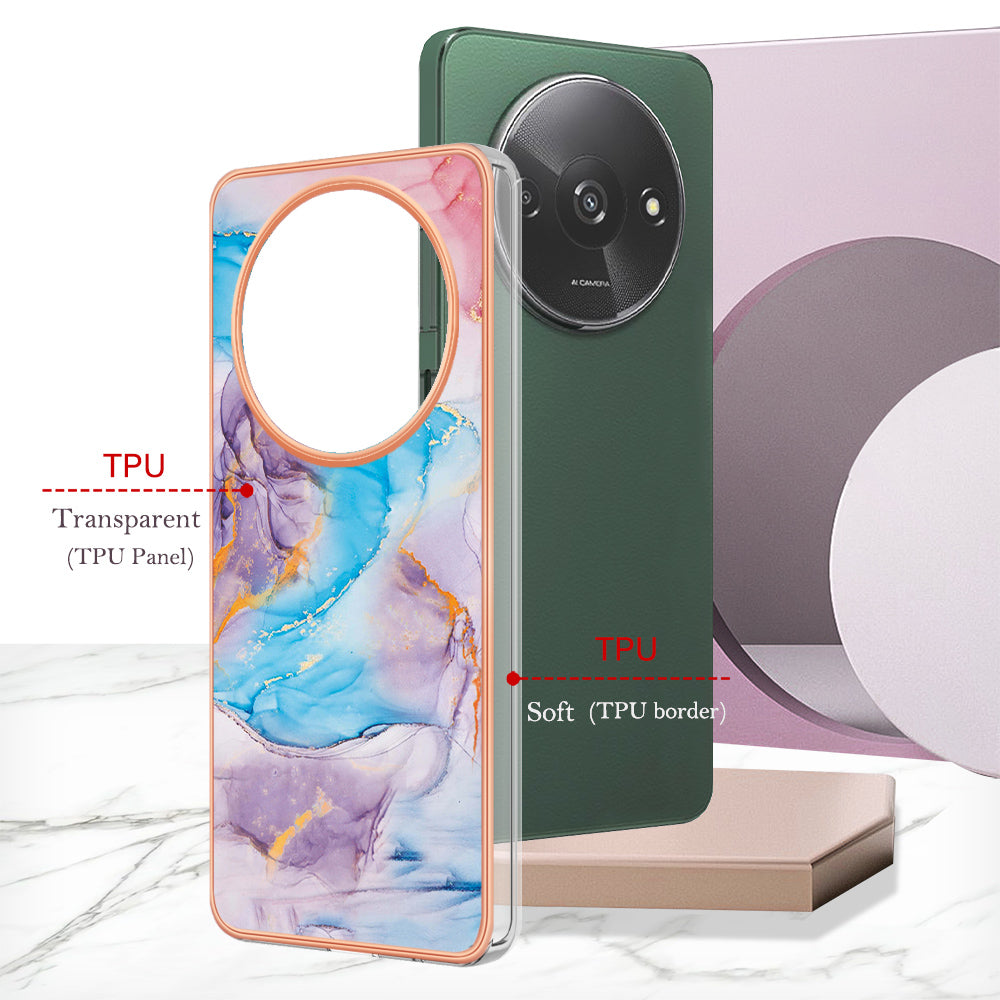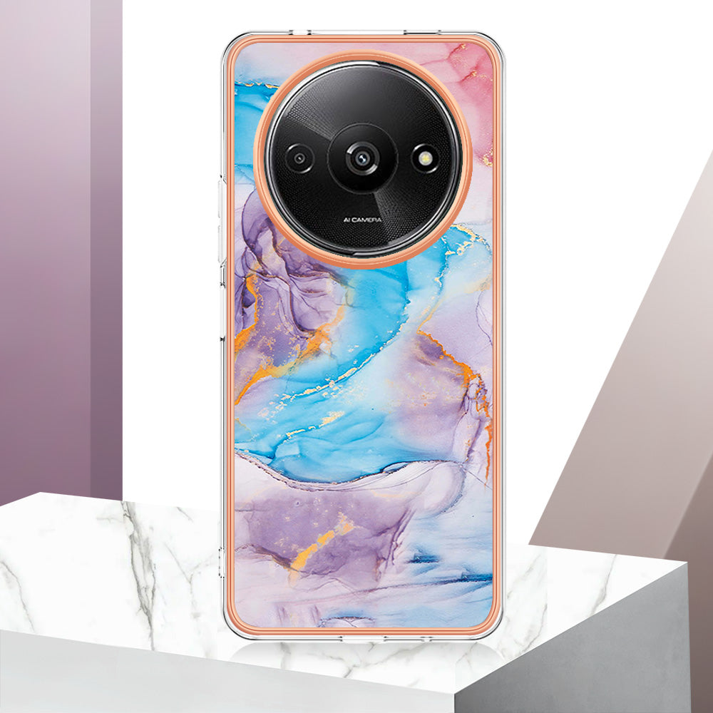 YB IMD Series-1 For Xiaomi Redmi A3 / Poco C61 4G Shockproof Case Electroplating TPU Phone Cover - Milky Way Marble Blue