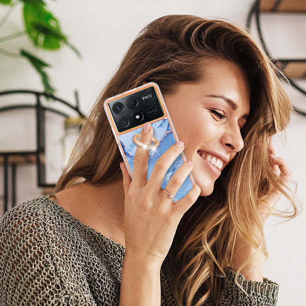 YB IMD Series-17 Style-E For Xiaomi Poco X6 Pro 5G / Redmi K70E 5G Case Kickstand 2.0mm TPU Phone Cover - Blue