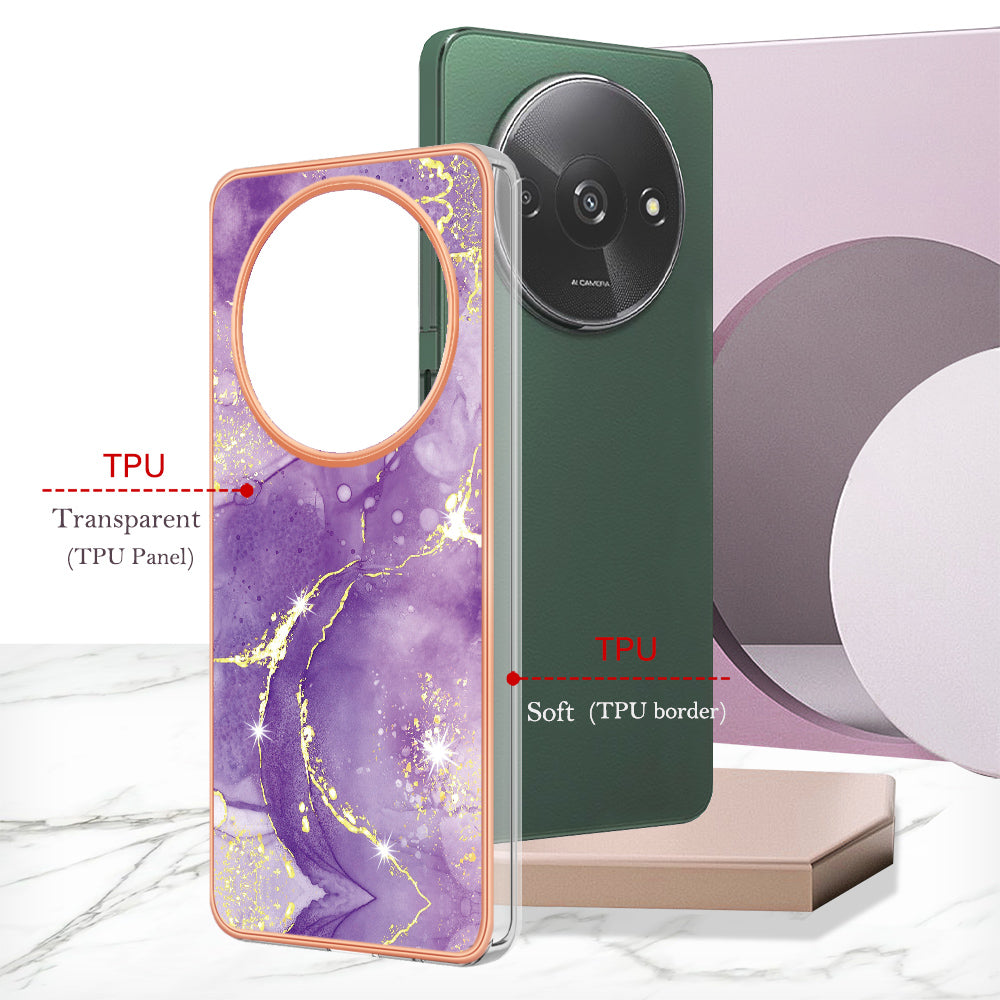 YB IMD Series-2 For Xiaomi Redmi A3 / Poco C61 4G Case Marble Pattern IMD TPU Phone Cover - Purple 002