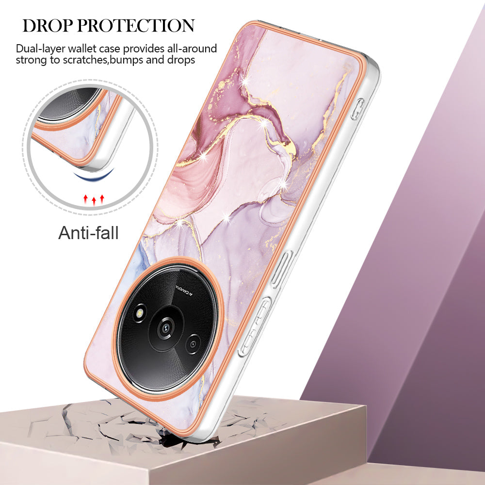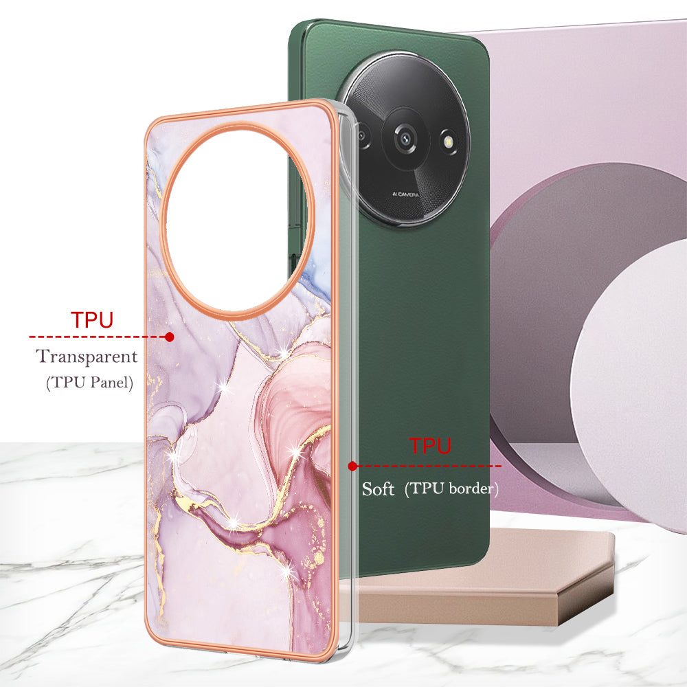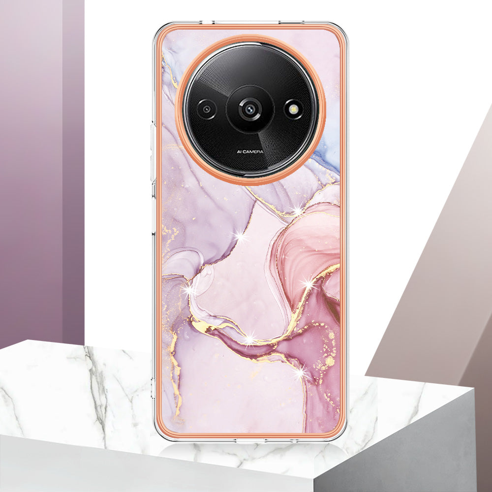 YB IMD Series-2 For Xiaomi Redmi A3 / Poco C61 4G Case Marble Pattern IMD TPU Phone Cover - Rose Gold 005