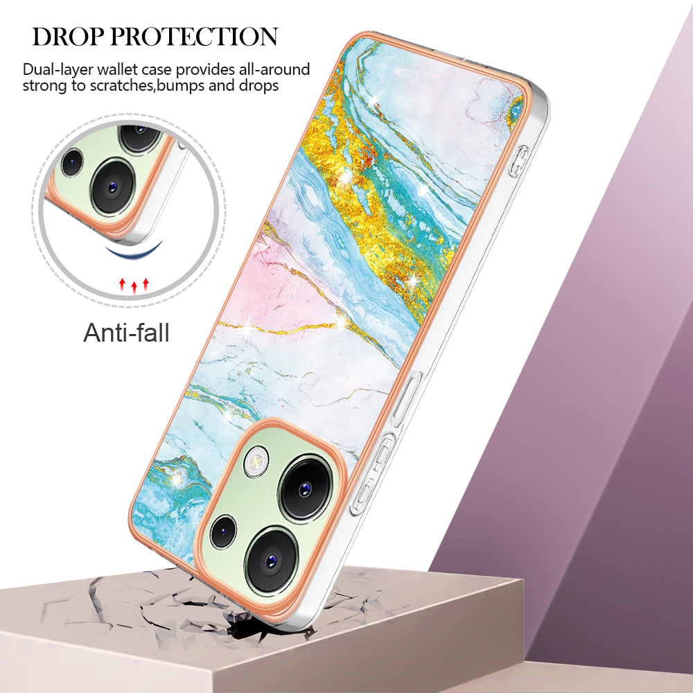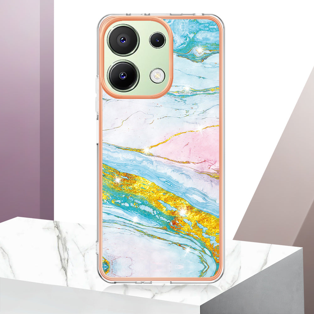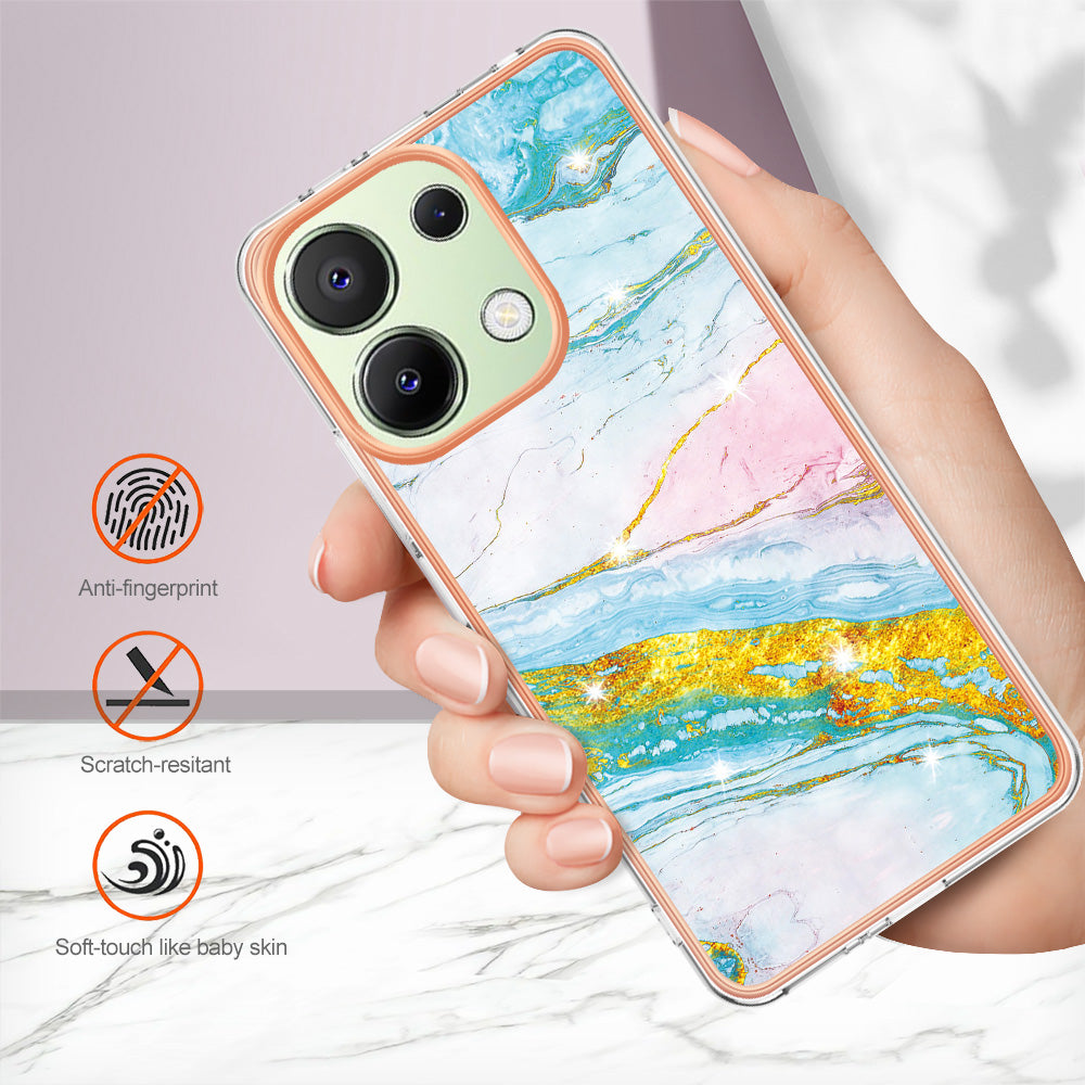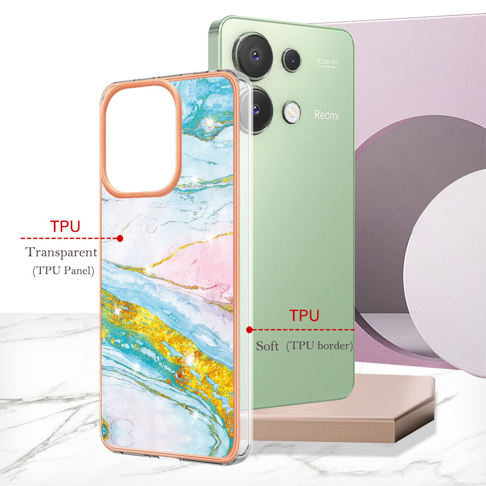 YB IMD Series-2 For Xiaomi Redmi Note 13 4G Back Case Marble Pattern Electroplated Frame TPU Phone Shell - Green 004