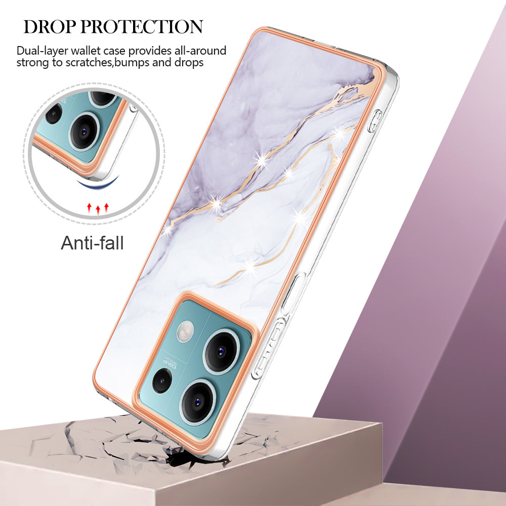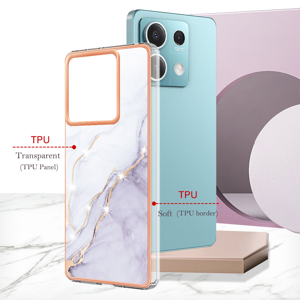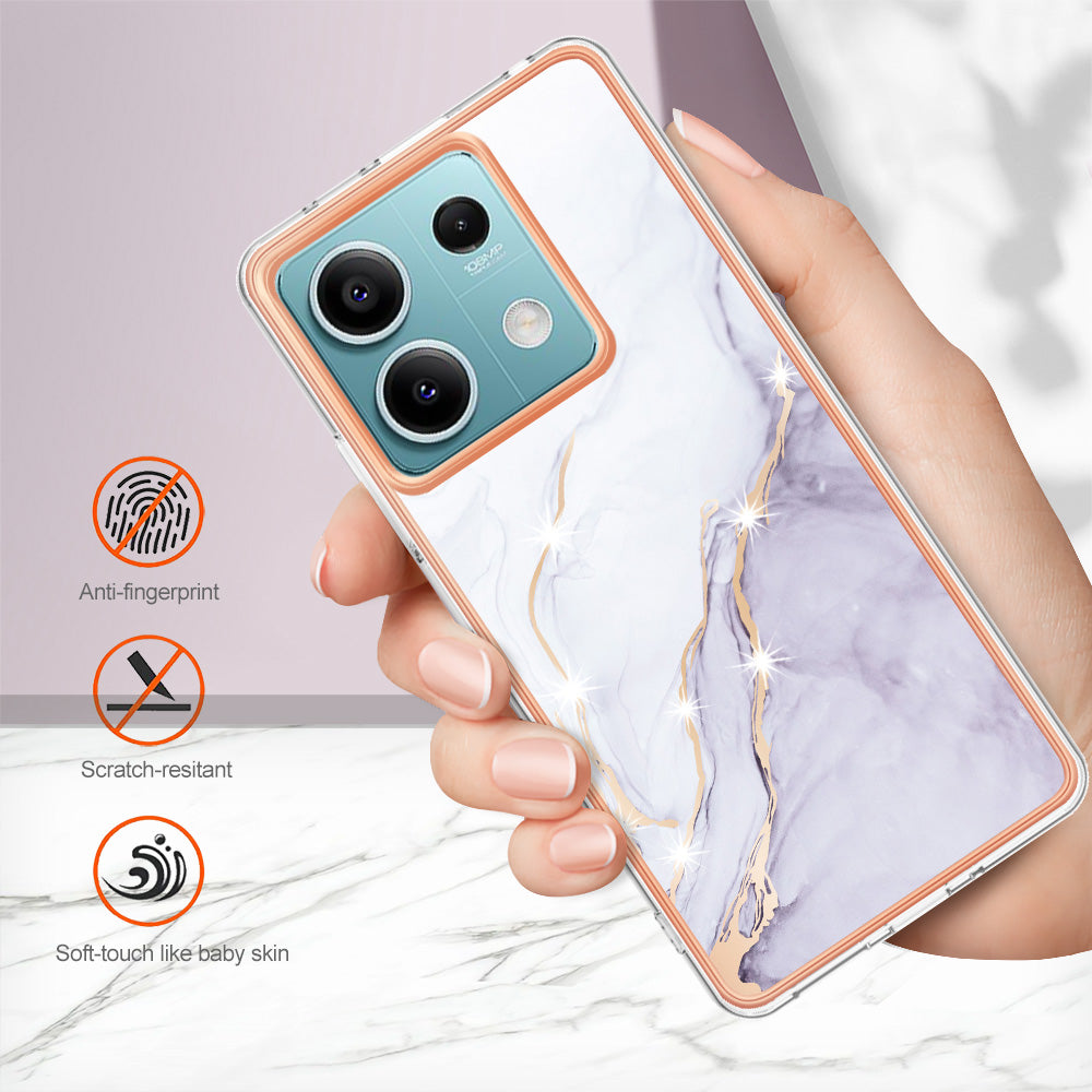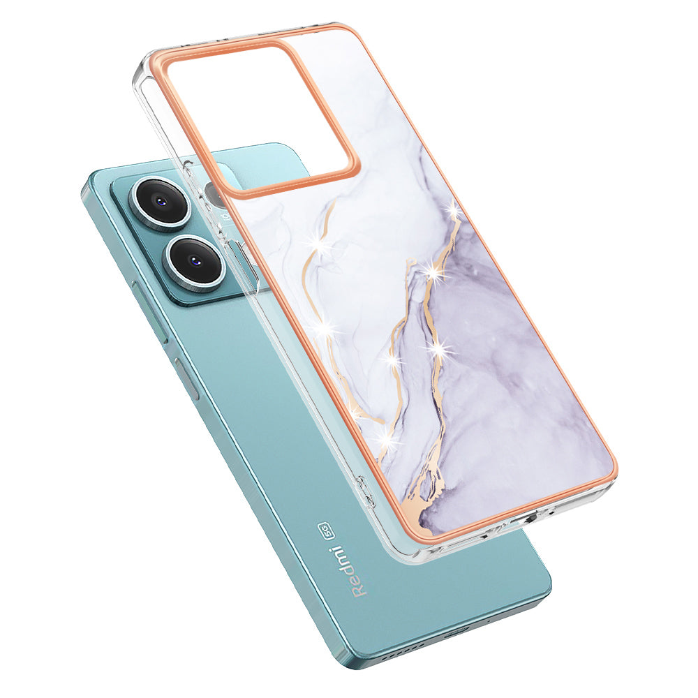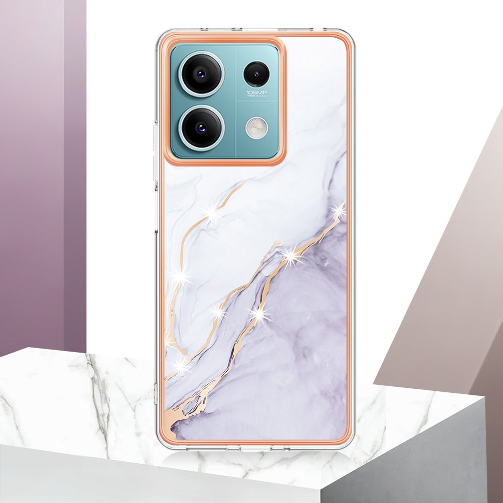 YB IMD Series-2 For Xiaomi Redmi Note 13 5G Phone Case Marble Pattern Electroplating Frame TPU Cover - White 006