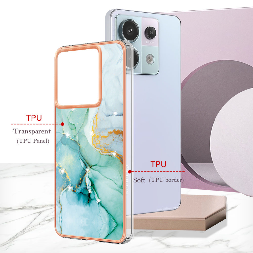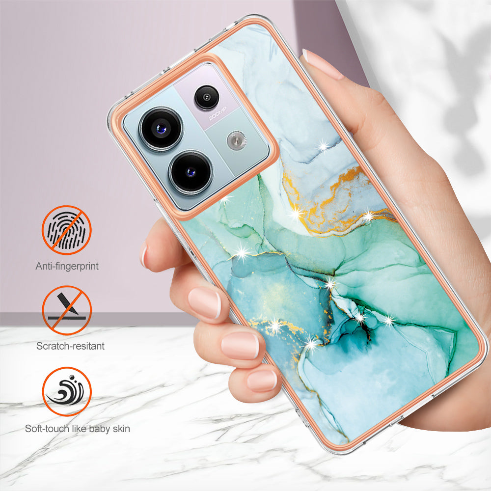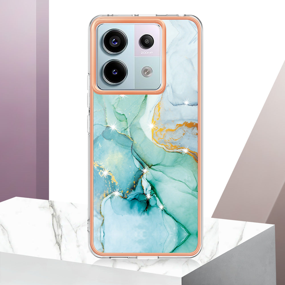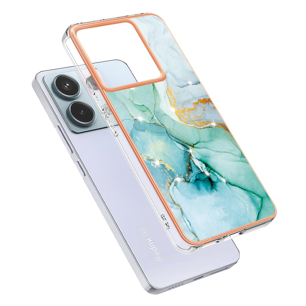 YB IMD Series-2 For Xiaomi Redmi Note 13 Pro 5G / Poco X6 5G Case Marble Pattern Electroplating TPU Cover - Green 003