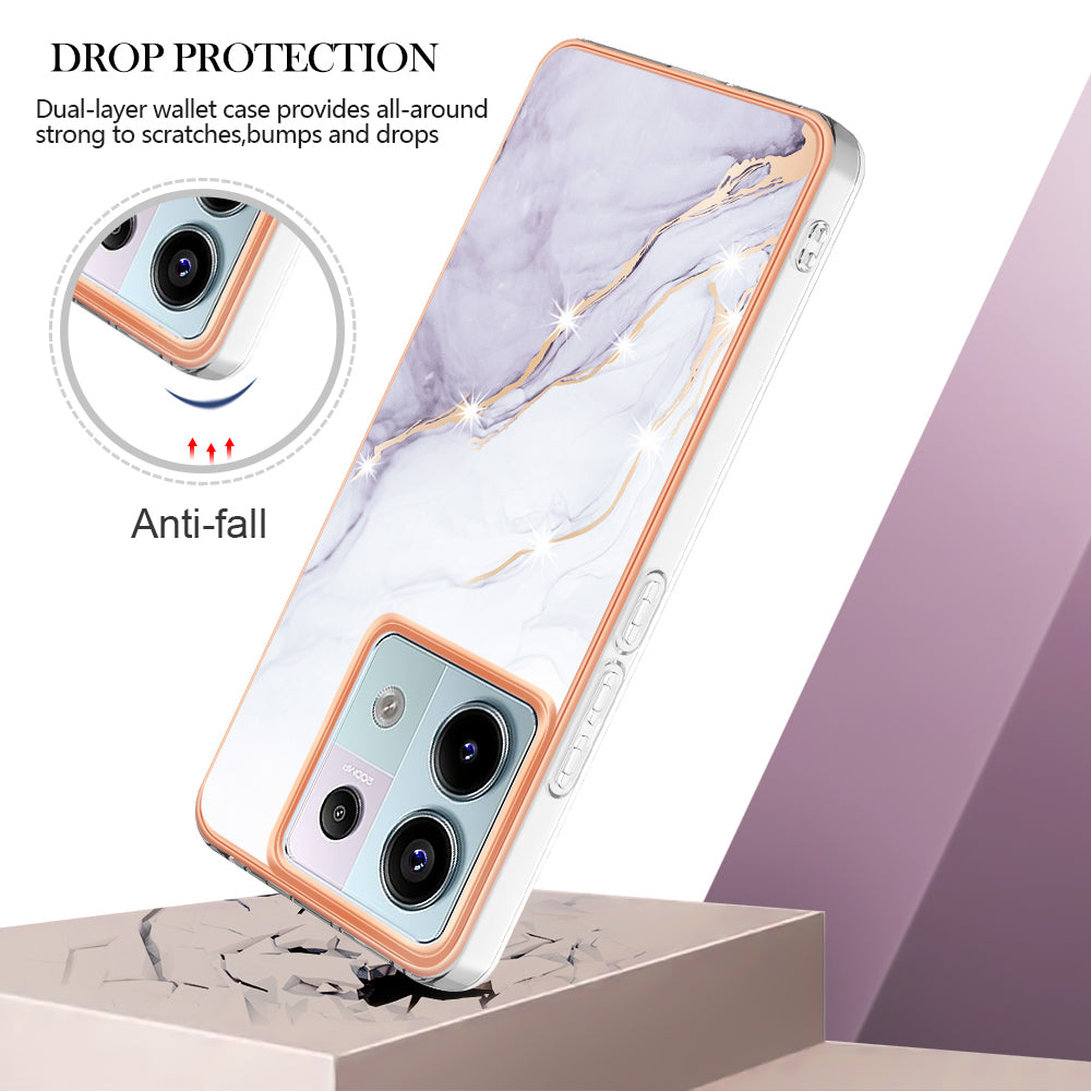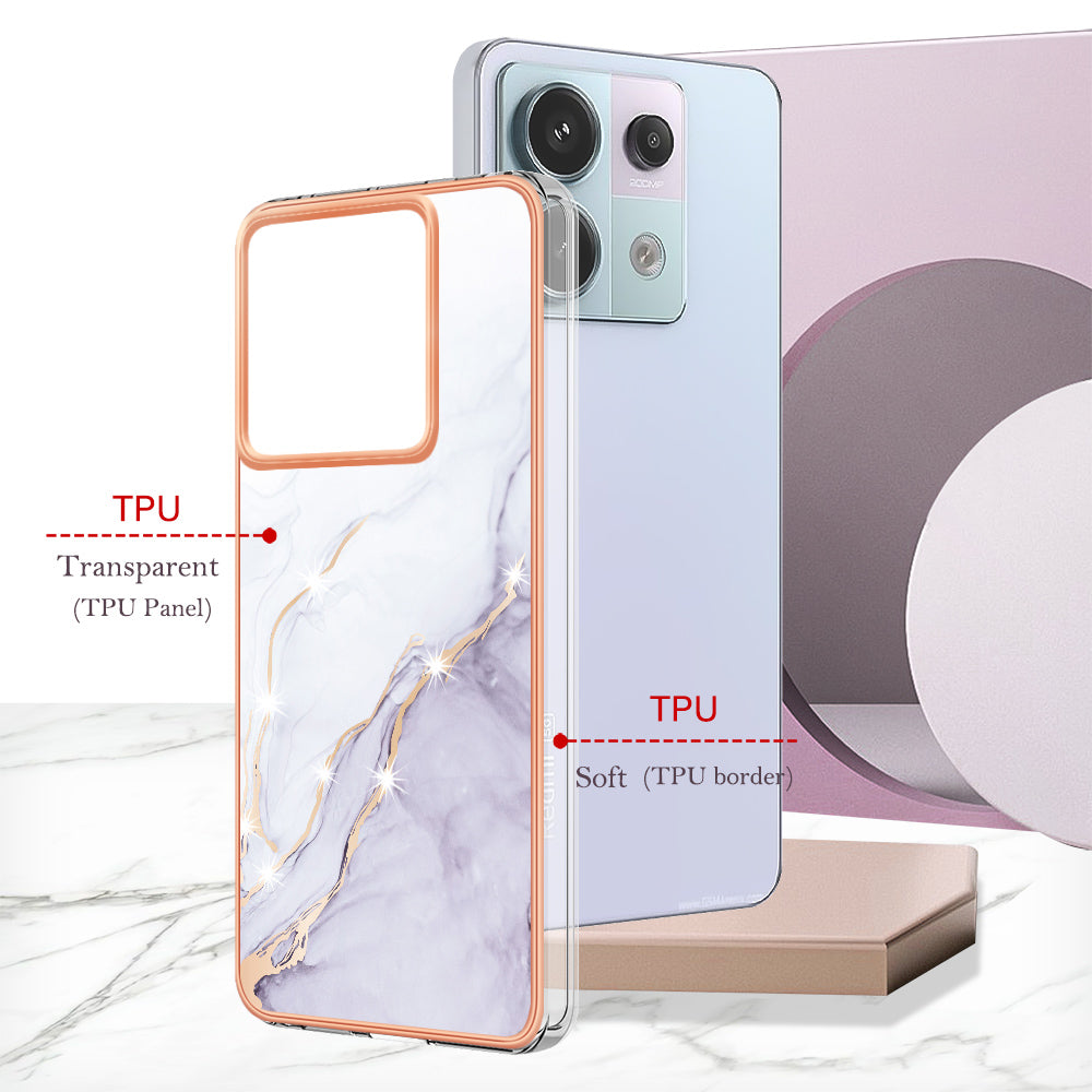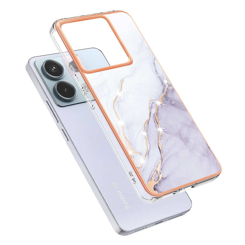 YB IMD Series-2 For Xiaomi Redmi Note 13 Pro 5G / Poco X6 5G Case Marble Pattern Electroplating TPU Cover - White 006