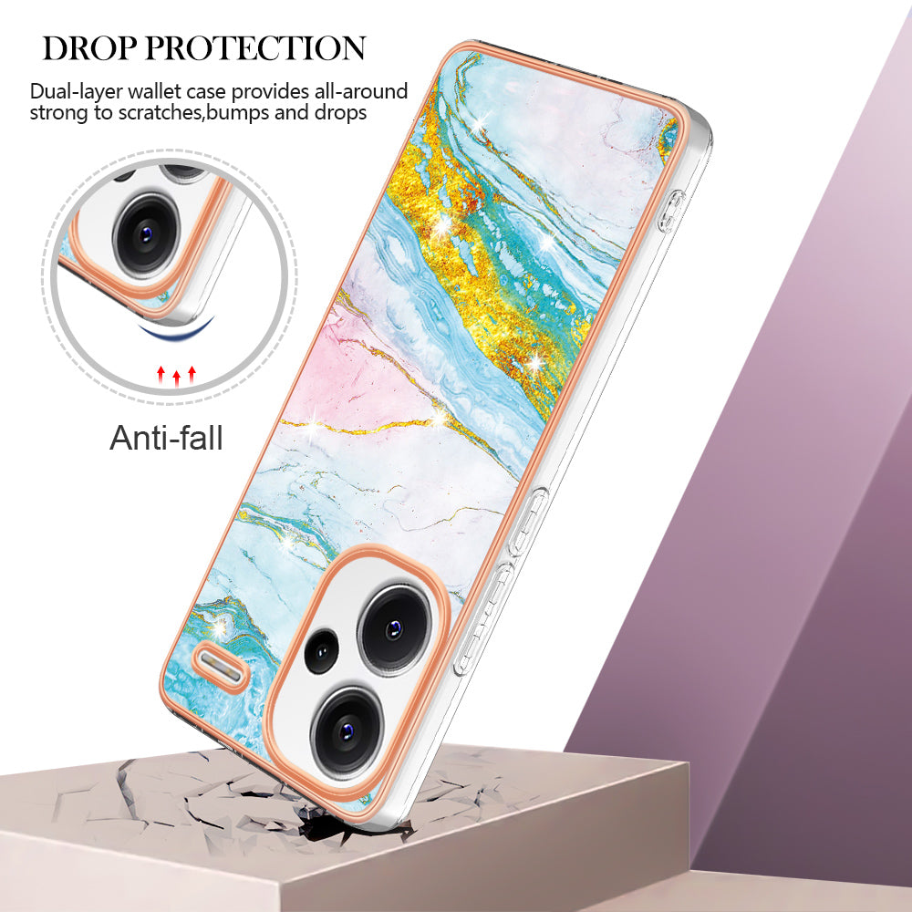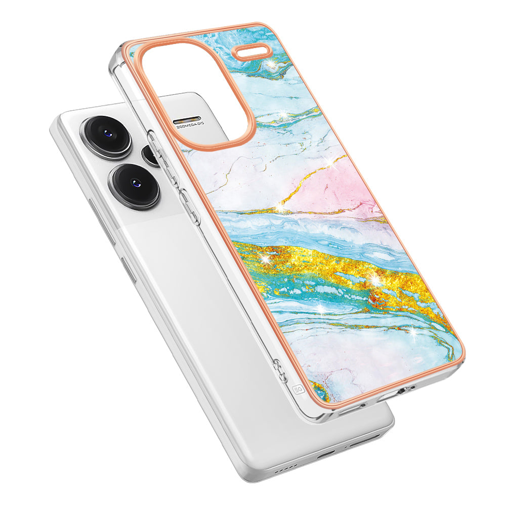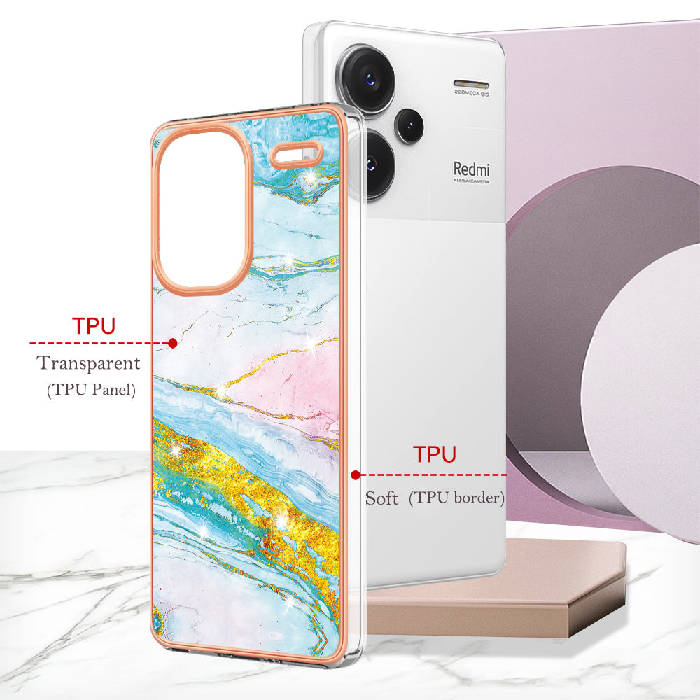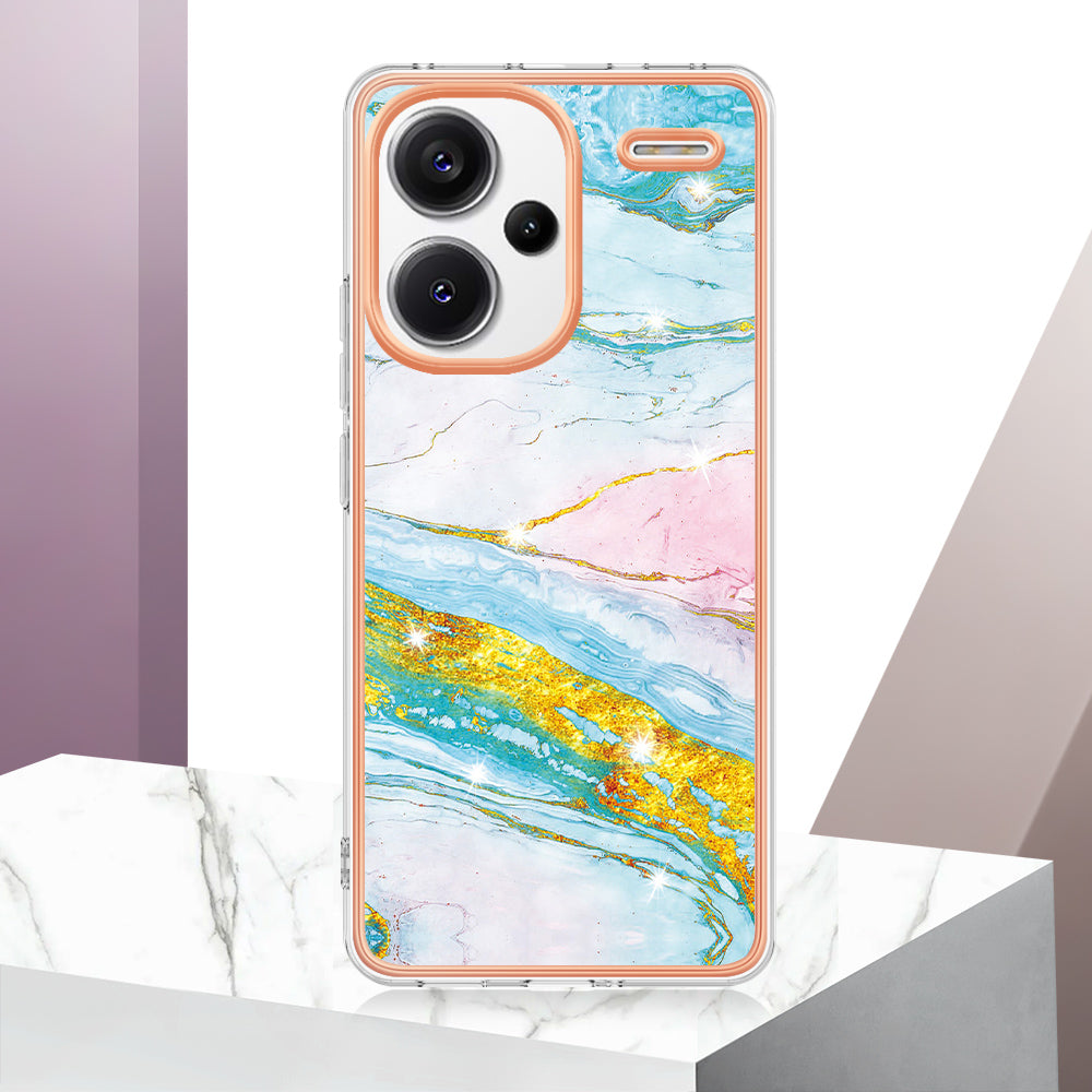 YB IMD Series-2 For Xiaomi Redmi Note 13 Pro+ 5G TPU Case Marble Pattern Shockproof Phone Cover - Green 004