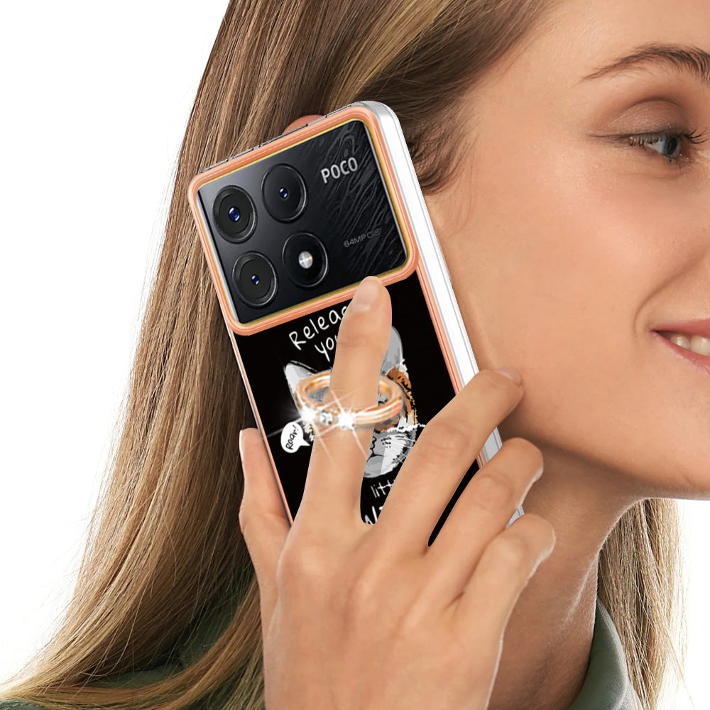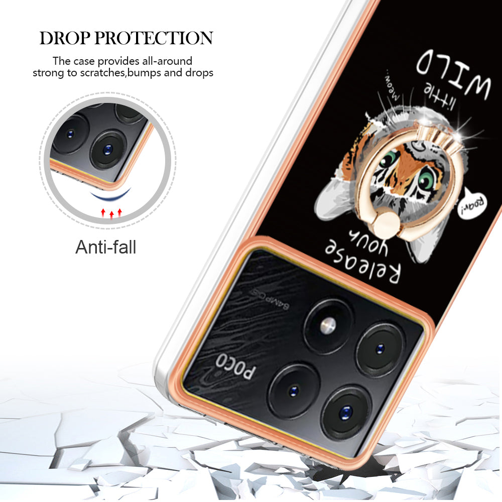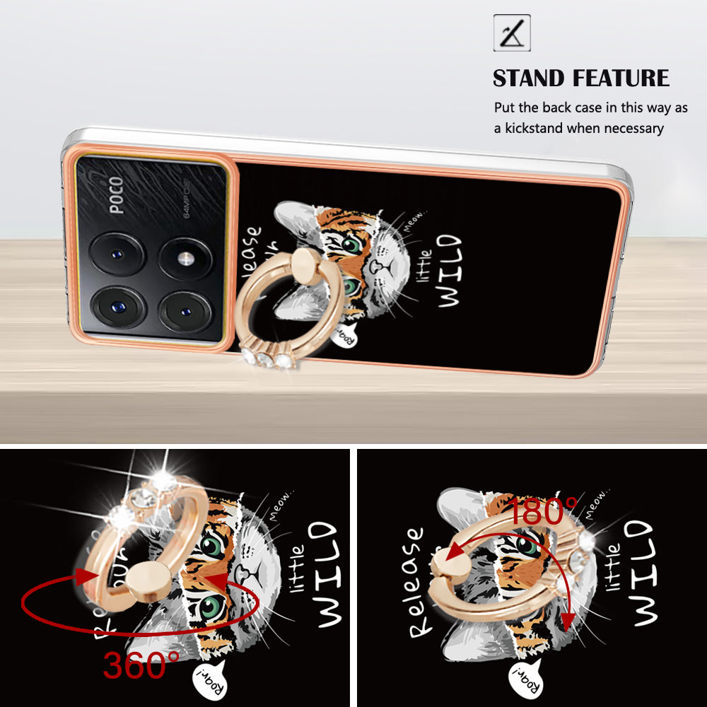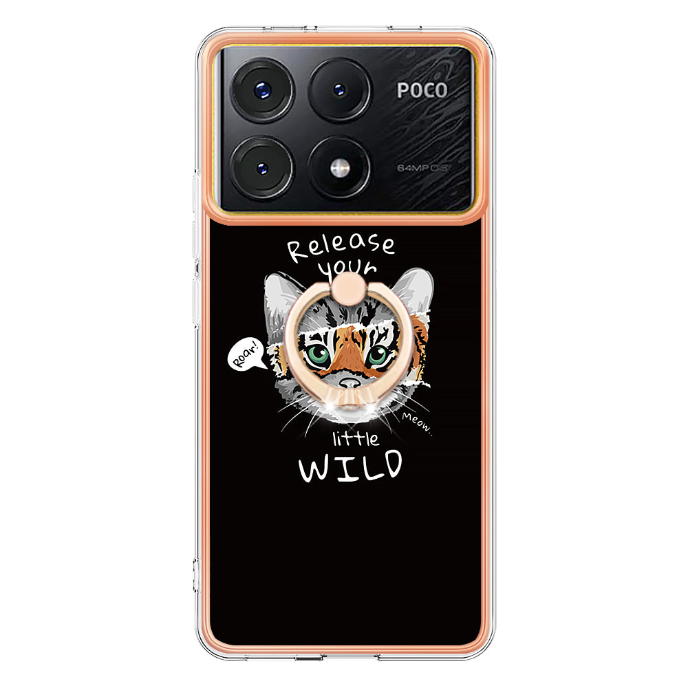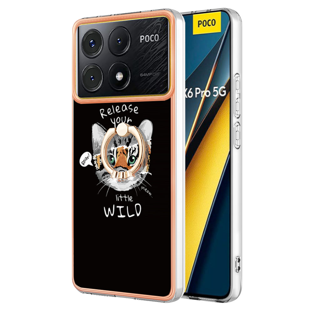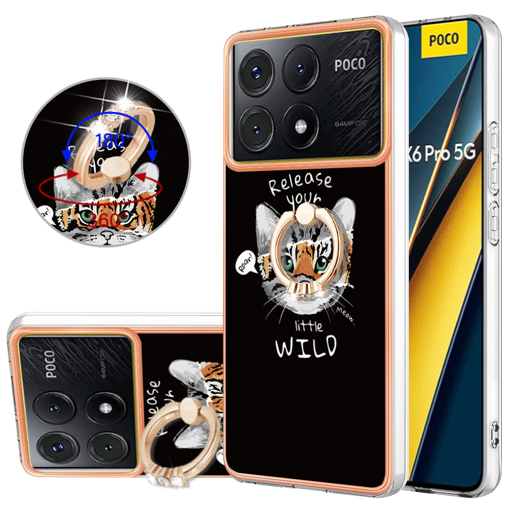YB IMD Series-20 Style D for Xiaomi Poco X6 Pro 5G / Redmi K70E 5G Case 2.0mm TPU Shelwith Ring Kickstand - Cat  /  Tiger